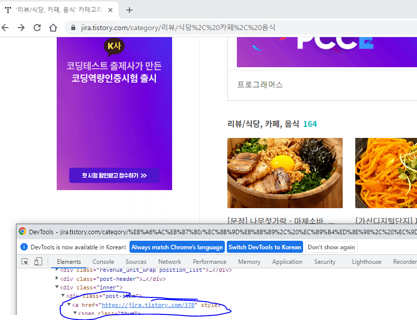 개발자 도구를 통해 확인하니 a태그에 category 파라미터가 추가되고 있었습니다.