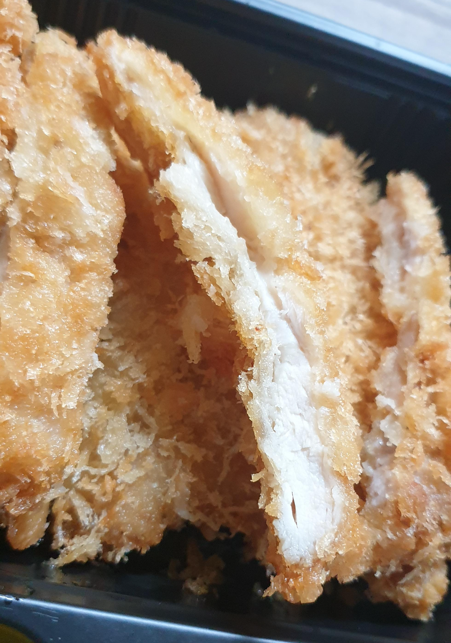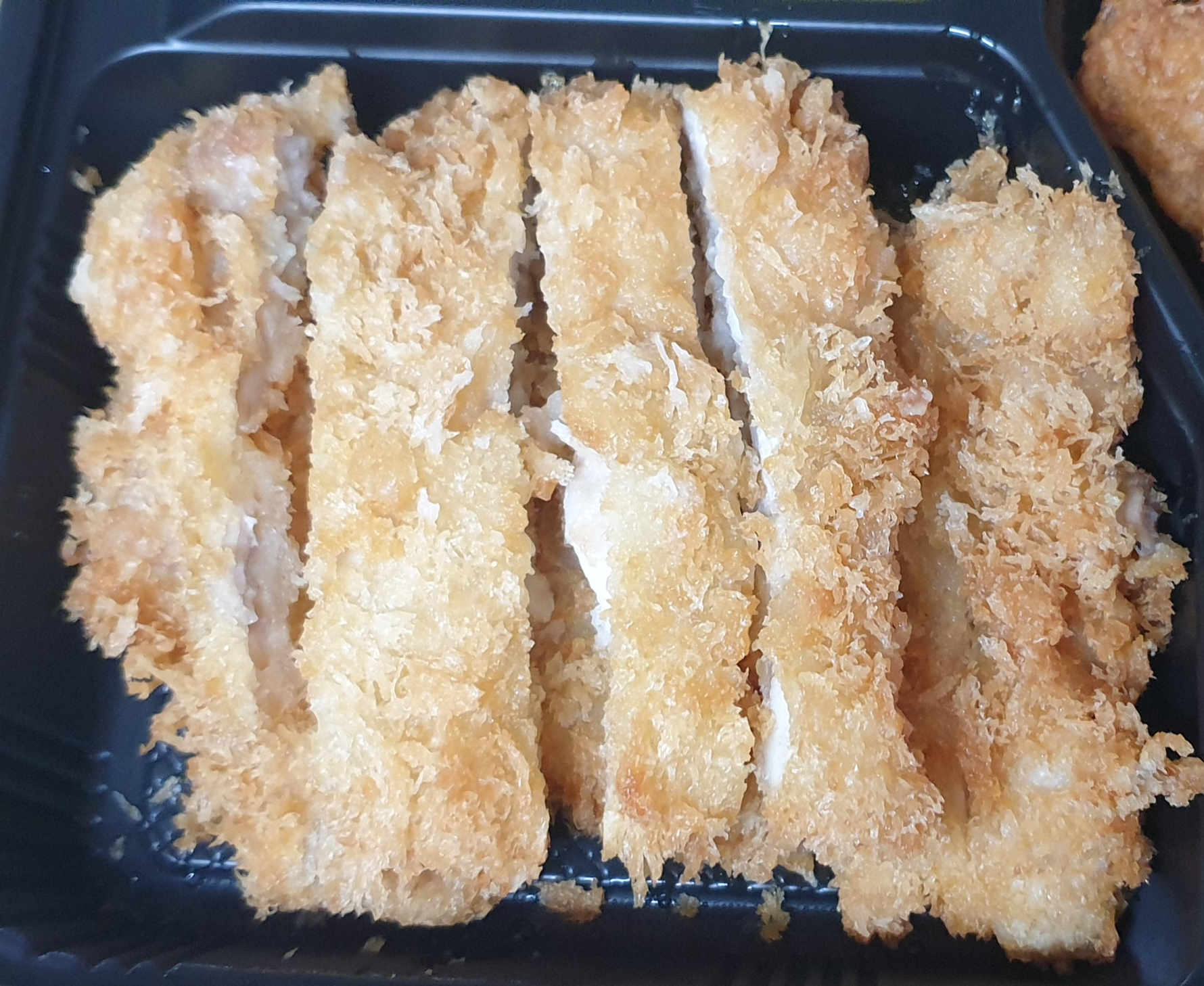 어쨋든 구성은 치킨가스 2장 한 장은 4조각 아래에 있는 치킨가스는 5조각으로 크기가 다르네요.