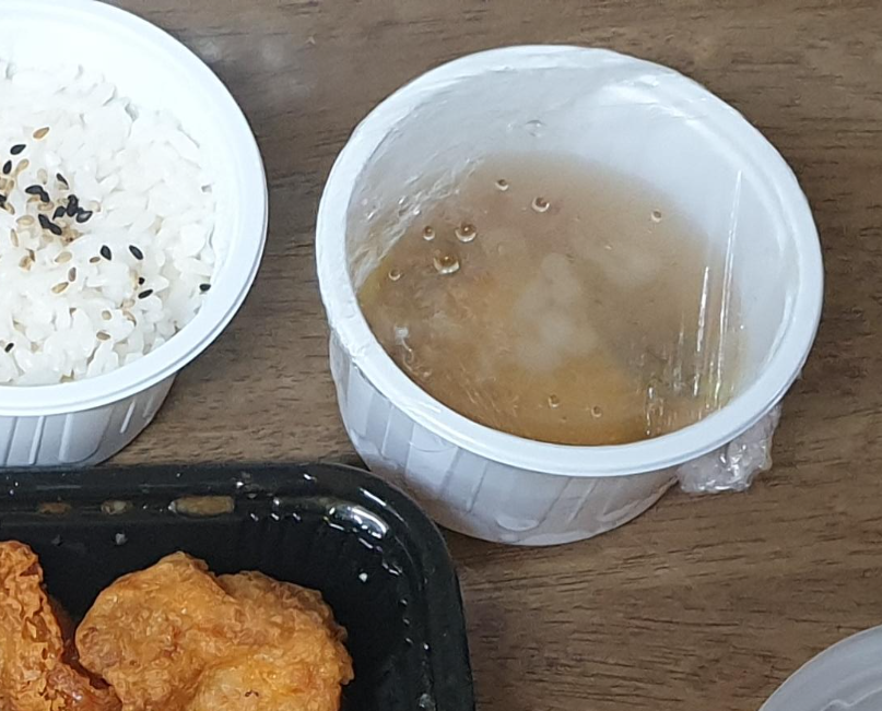 샐러드는 마요네즈 맛이 강했습니다. 치킨까스 소스로 온건 평범한 돈가스 소스 맛이었고, 국물은 간이 약간 쌔지만 맛있었습니다.