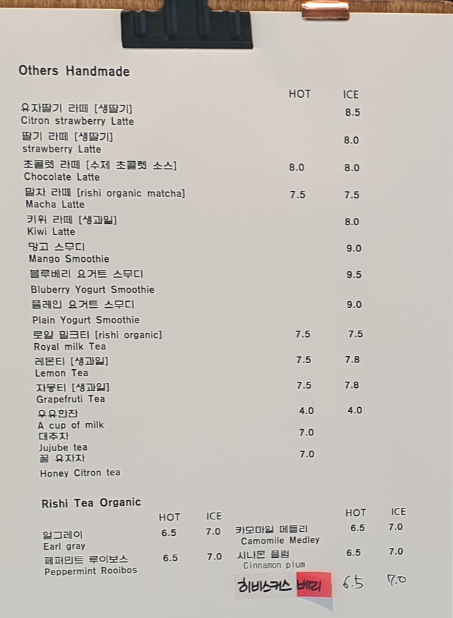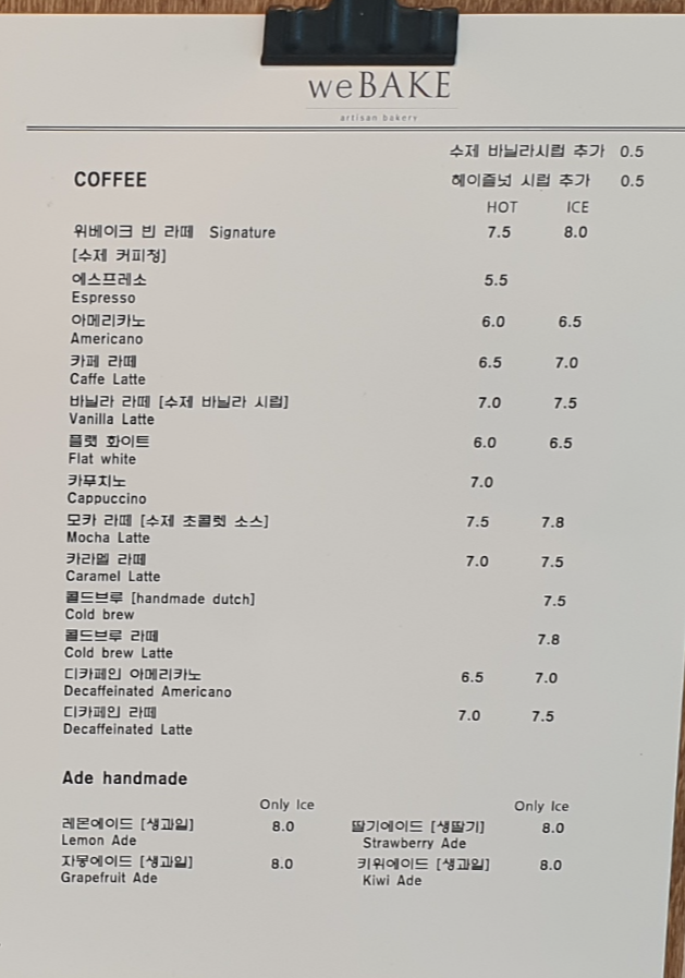 저희는 아이스 카페 라떼(7,500원)와 딸기 라떼 (8,500원)를 주문했습니다.