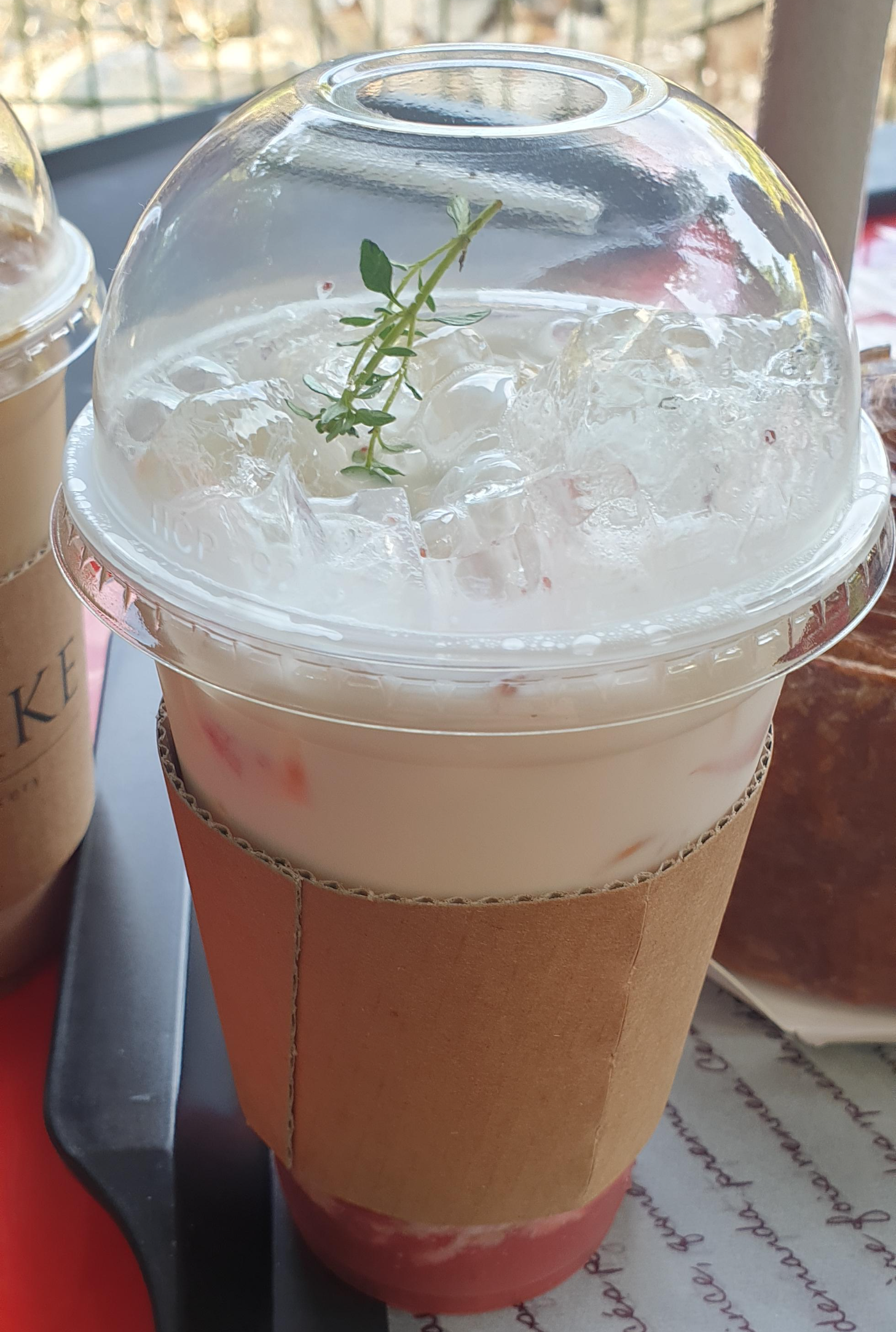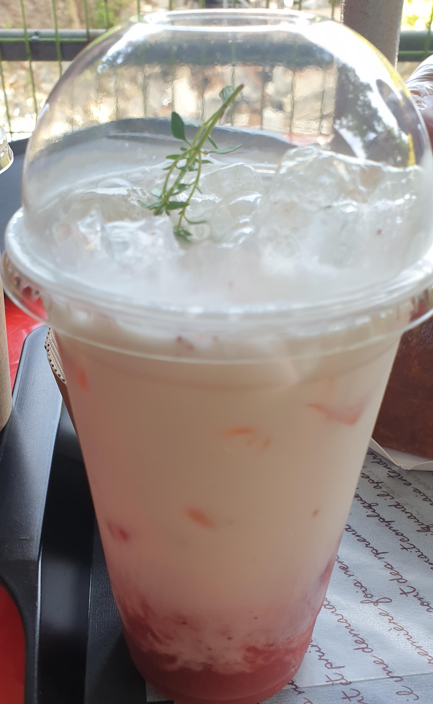 딸기 냄새인지 단맛 때문인지 벌 들이 딸기 라떼 빨대에 자주 날아오더군요.