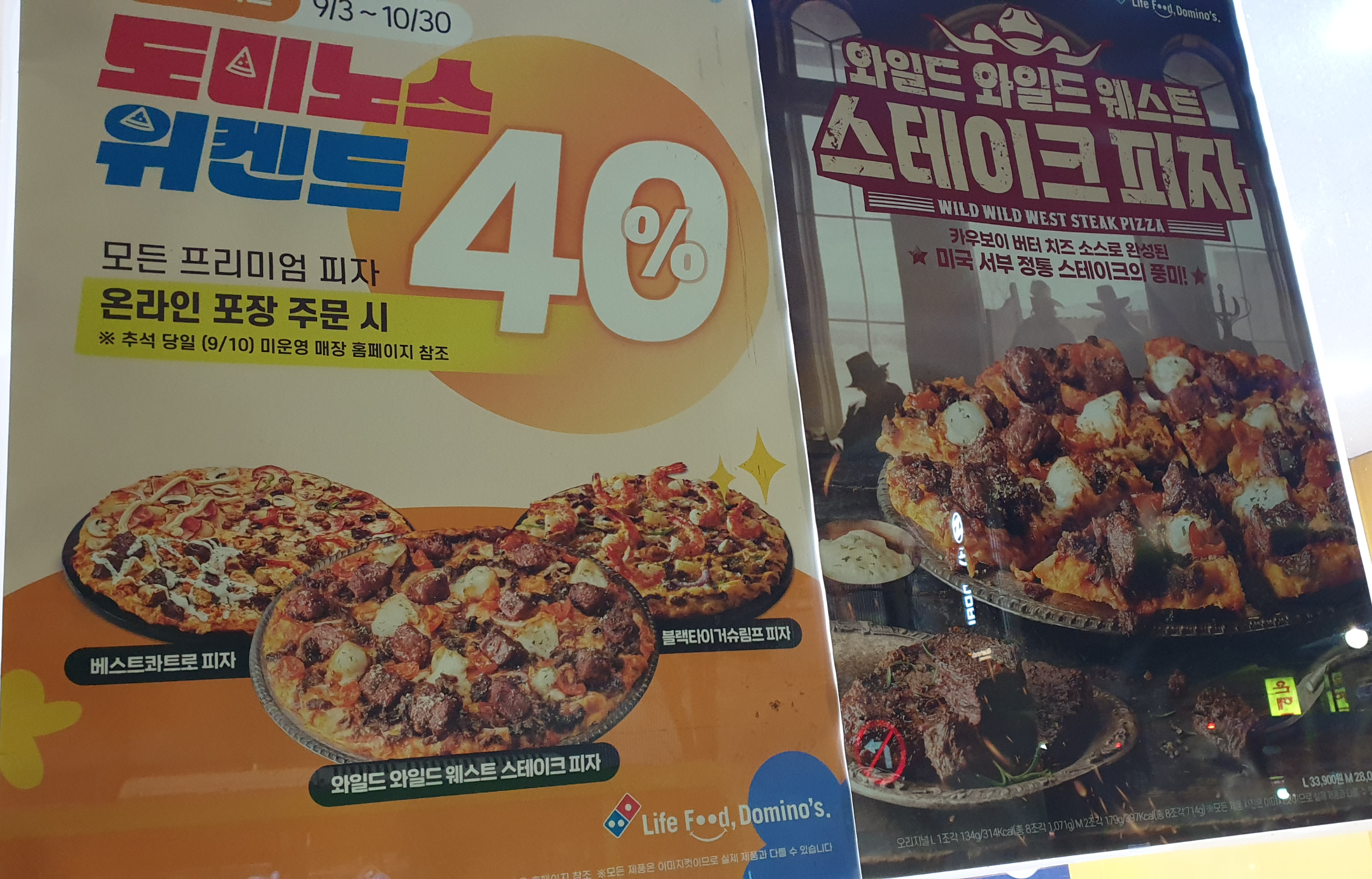 와일드 와일드 웨스트 스테이크 피자가 포스터로 붙어 있는 걸 보면 제일 최신인 것 같네요.