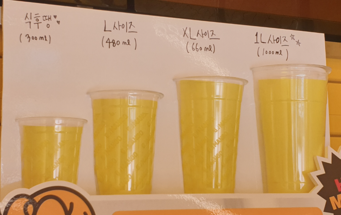 개인적으론 망고주스같이 달달 한 건 딱 저 사이즈가 안 질리고 마시기 좋은 것 같아서 작은 사이즈를 파는 게 좋았습니다.