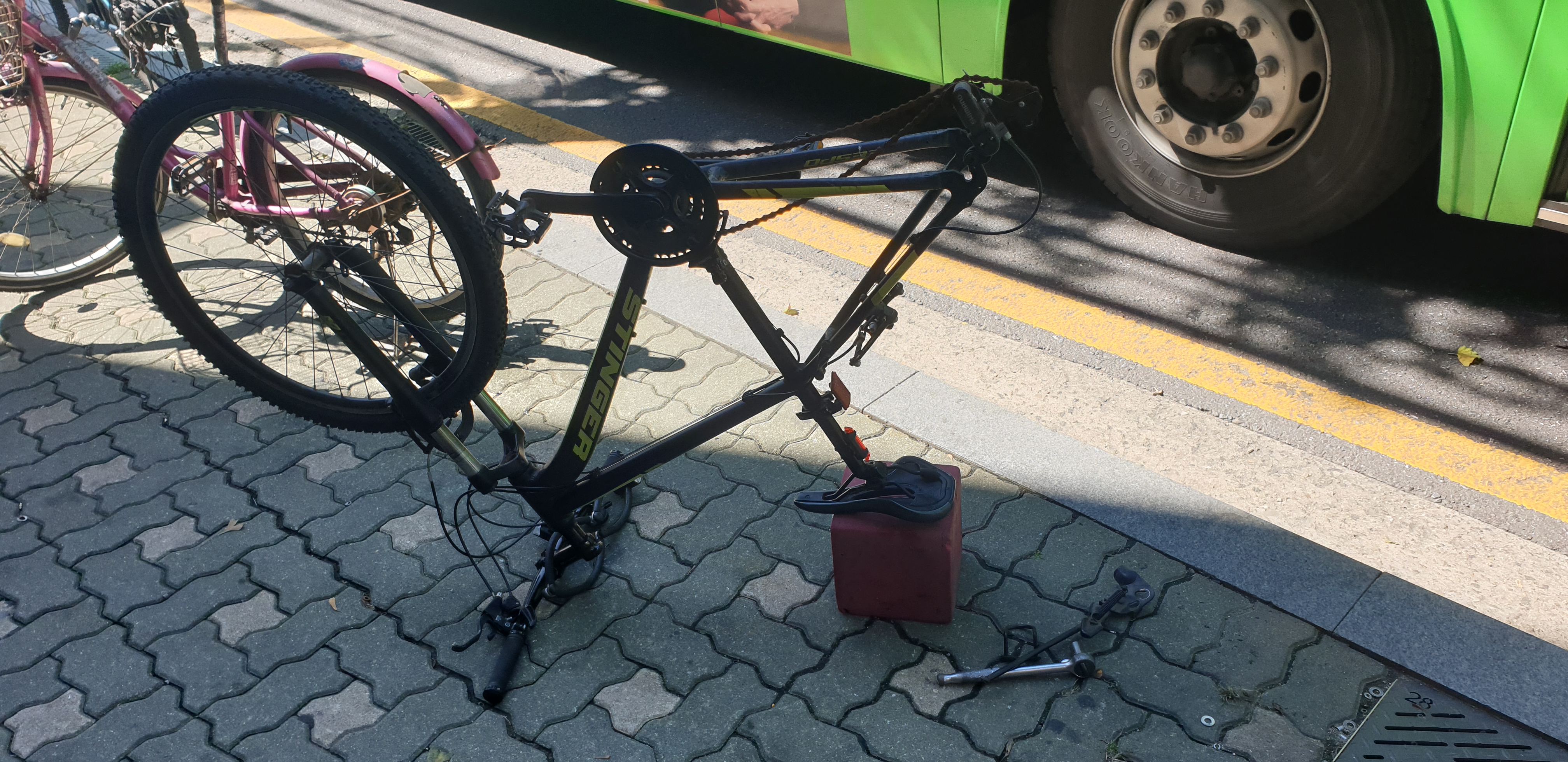 직접 갈면 싸고 갈기도 쉽다지만... 바람을 넣을 펌프도 없고, 도구도 없으니 그냥 맘 편하게 근처 자전거 가게에 갔습니다.
