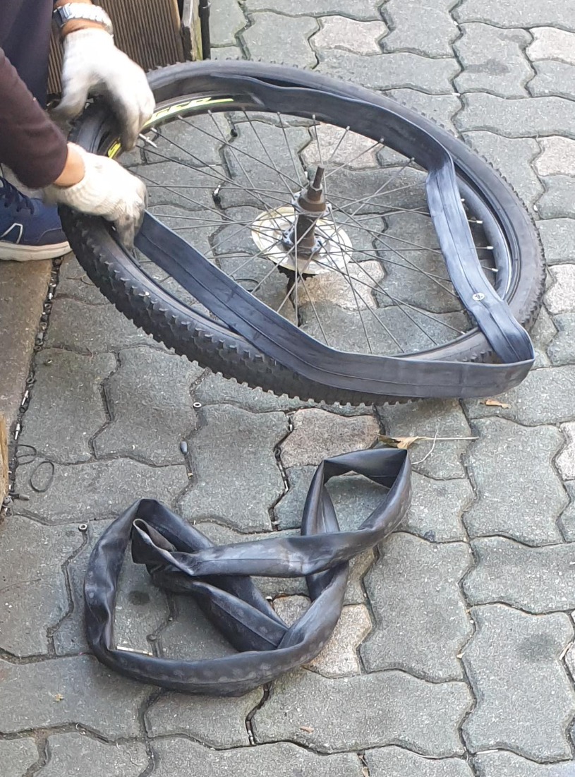 몇 주 전에 자전거를 타려고 보니 뒷바퀴가 바람이 들어가도 금방 바람이 빠지는 게 펑크가 난 것 같아서 갈아야지... 갈아야지... 하다가 이번에 갈았습니다.
