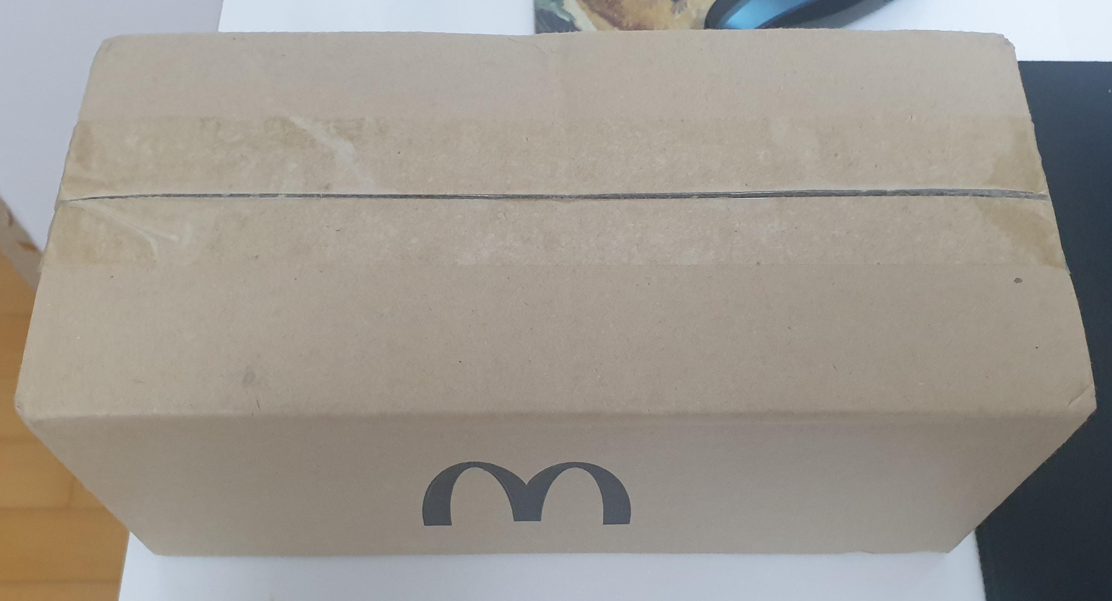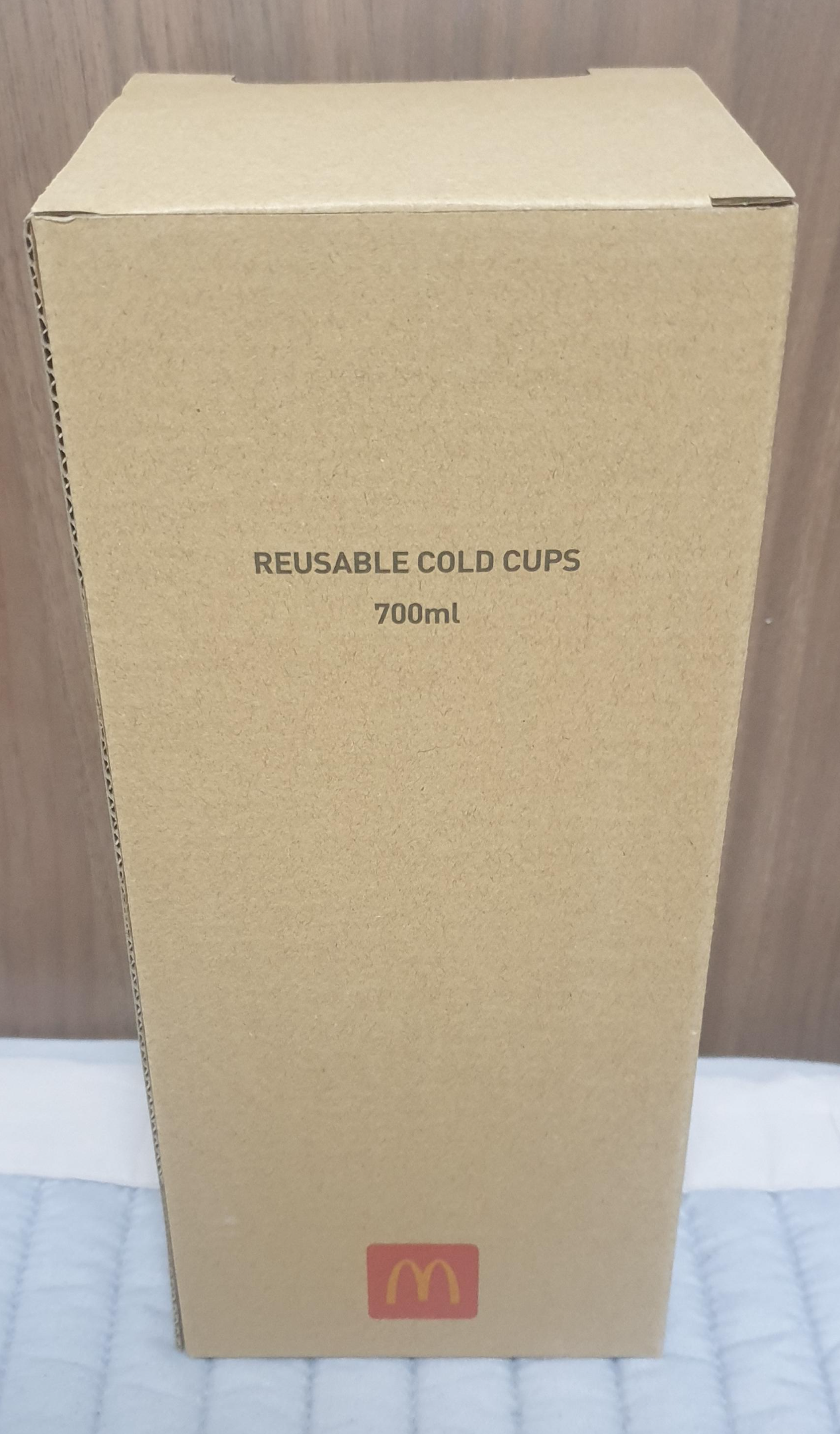 택배박스에는 양쪽에 맥도날드의 M자가 보이네요. 안에는 딱 맞게 리유저블 컵 상자가 들어있습니다.