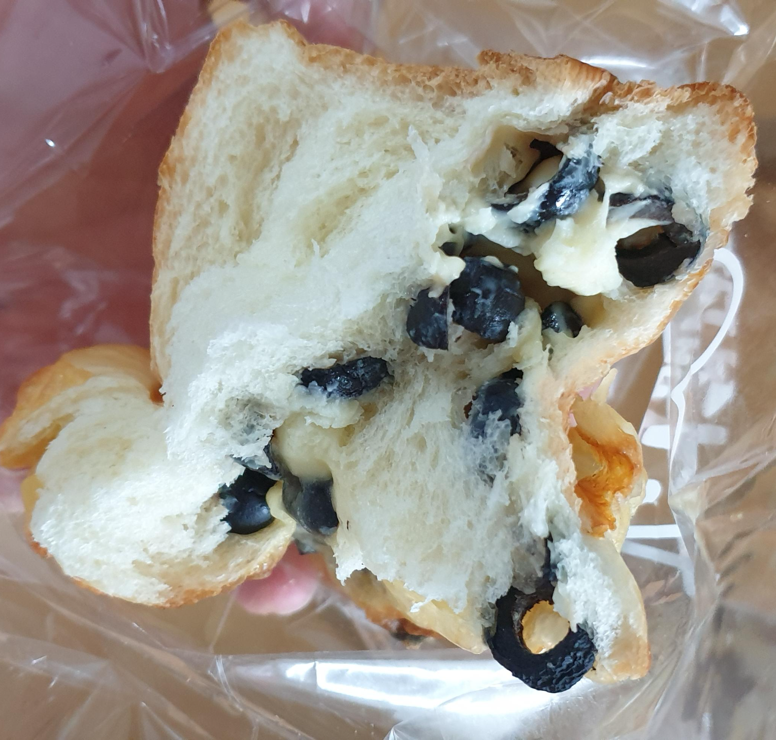안쪽은 부드럽고, 치즈 보다는 올리브가 많아서 올리브 좋아하는 사람에게 딱 맞는 맛인 것 같습니다.