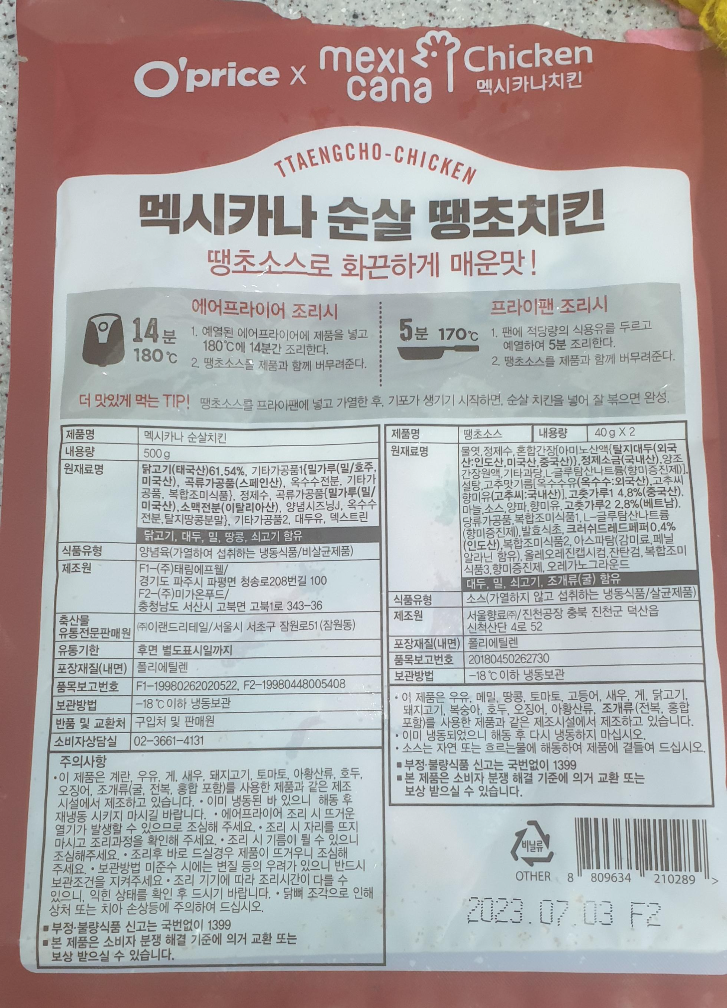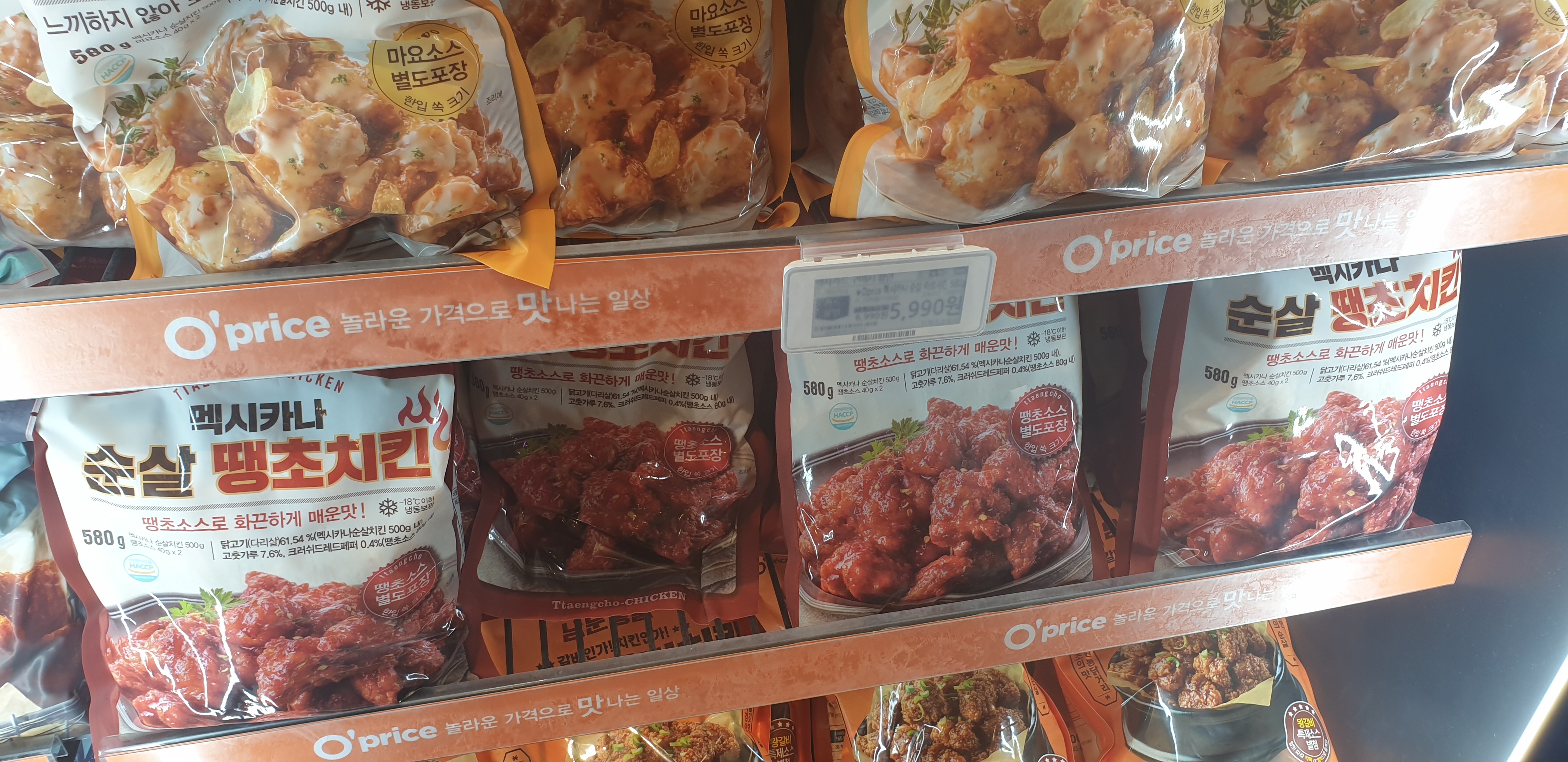 가든파이브에 위치한 킴스클럽 송파점에서 멕시카나 순살 땡초치킨이라는 냉동 치킨을 구매했습니다.