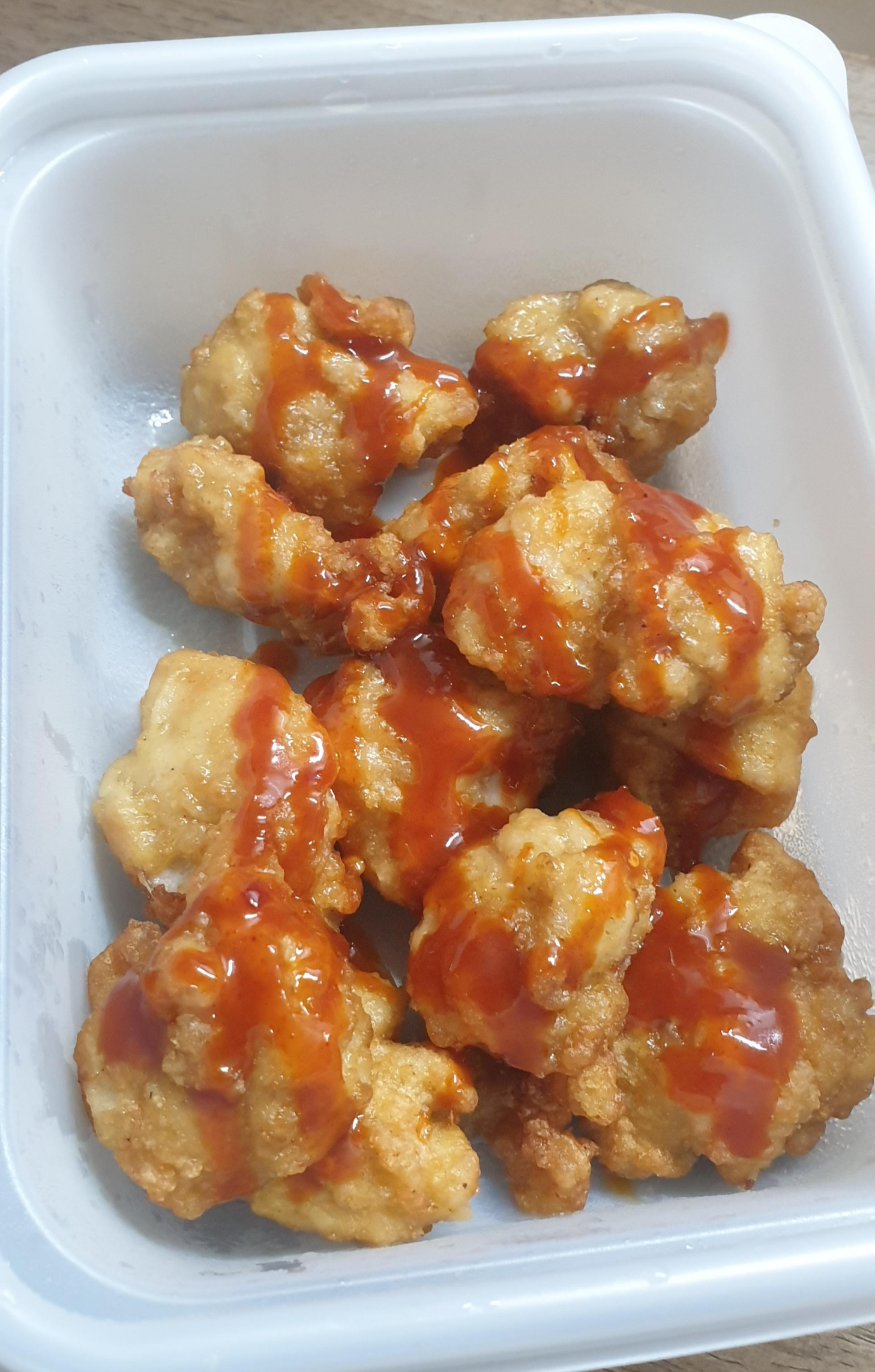 닭고기도 다릿살이라 부드럽고, 튀김옷도 전자레인지에 돌린 것 치고는 무난했던 것 같습니다.