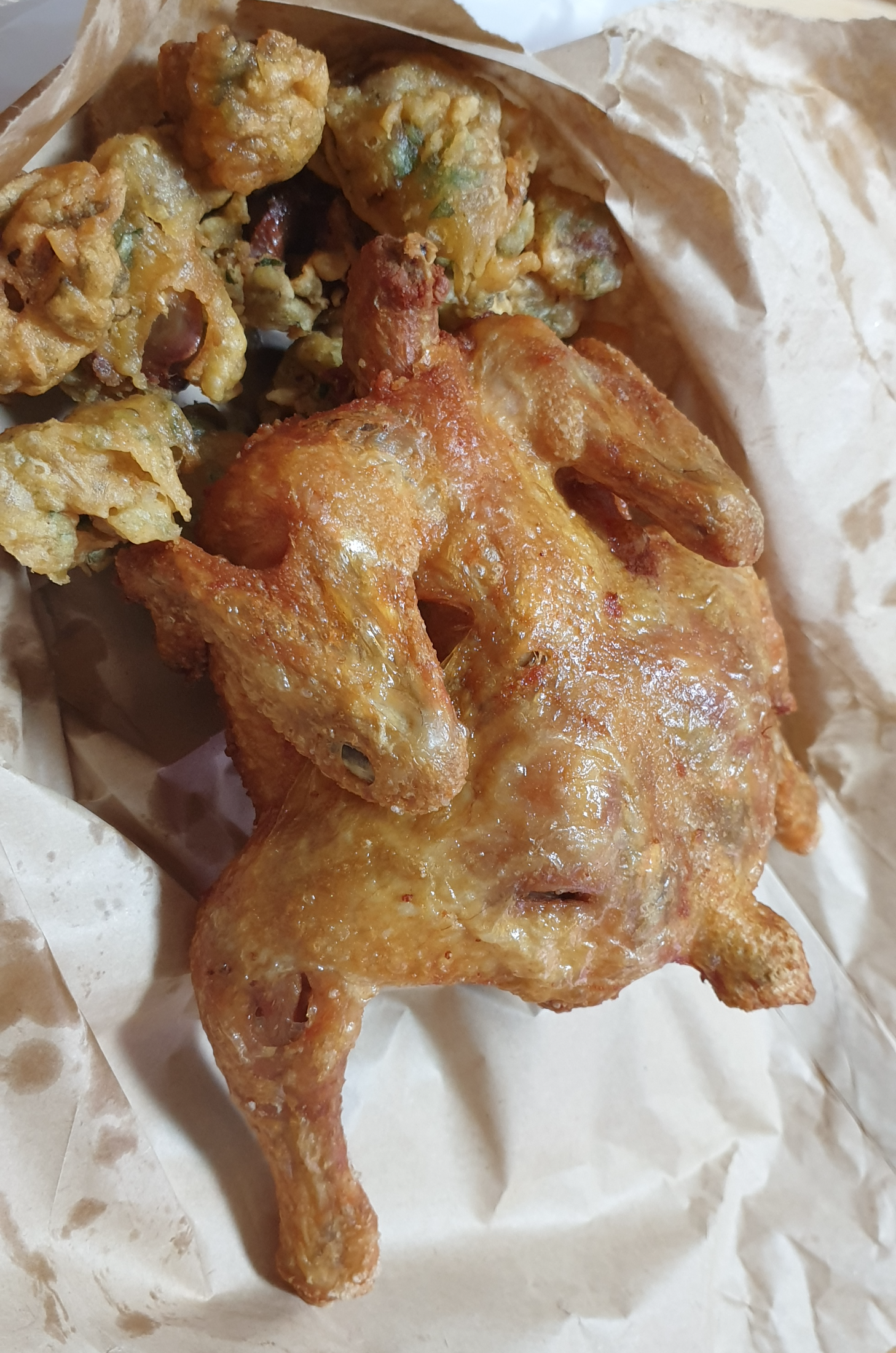 똥집 튀김과 옛날통닭이 같이 들어 있습니다.