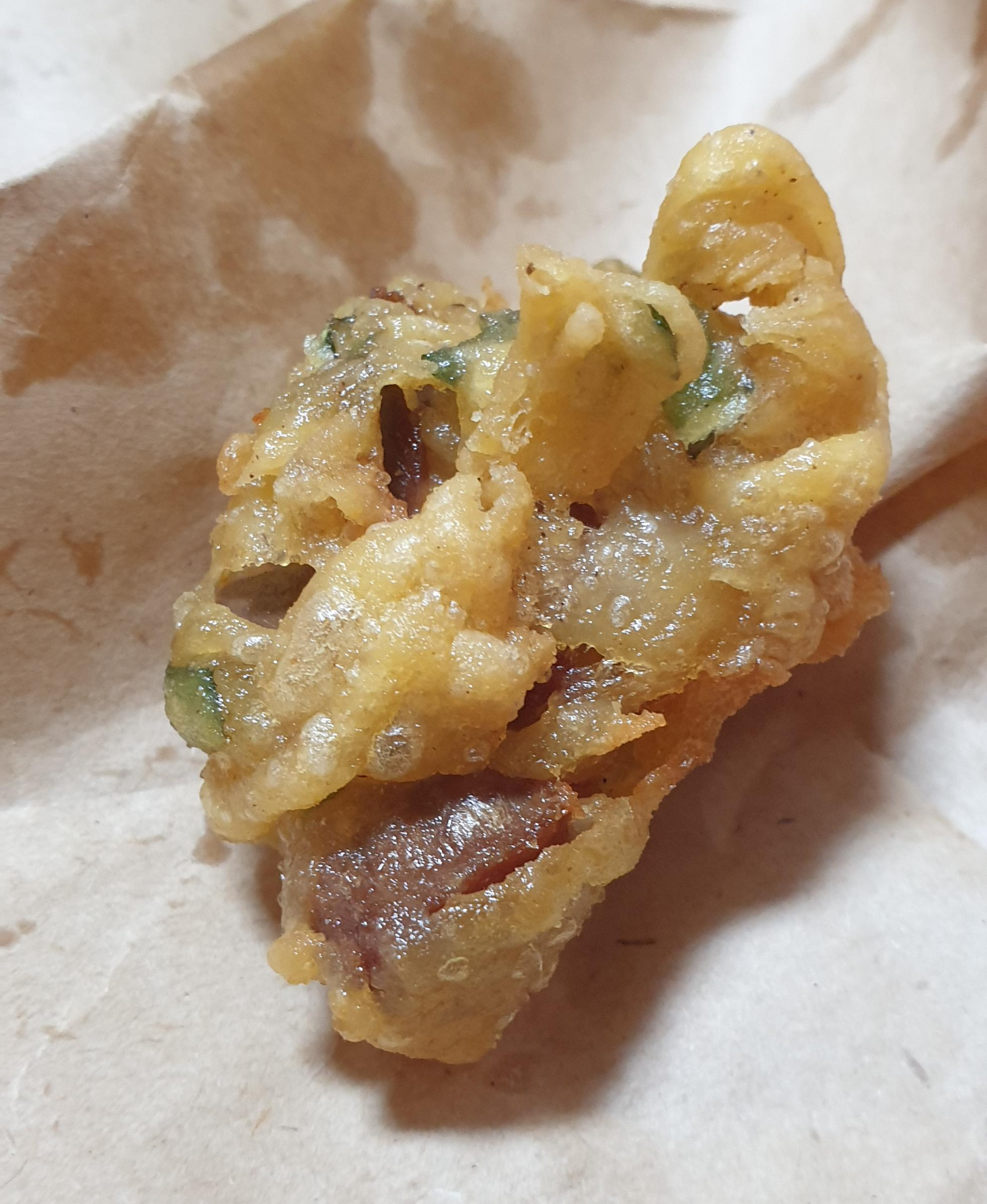 닭똥집 한 개당 거의 2배의 튀김옷을 입고 있어서 느끼하다고 생각했습니다. 옛날 분식집에서 먹던 튀김들의 꼬다리 같은 느낌이라고 할까요. 따뜻해서 몇 개는 먹을 맛 했지만 반죽 자체가 두꺼우니 금방 물리고 느글느글해지더군요.