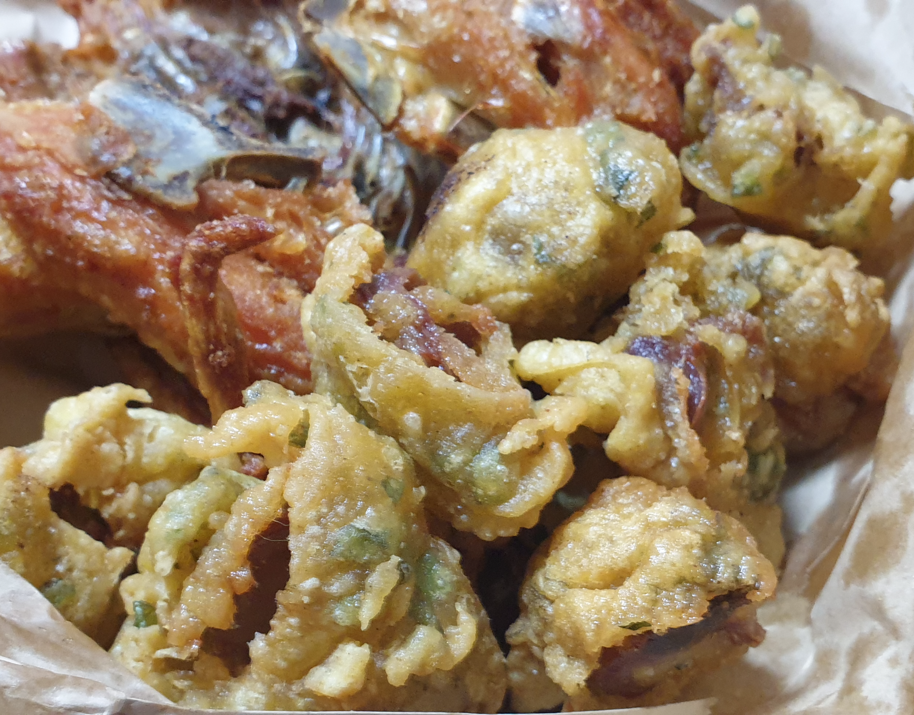 닭똥집 한 개당 거의 2배의 튀김옷을 입고 있어서 느끼하다고 생각했습니다. 옛날 분식집에서 먹던 튀김들의 꼬다리 같은 느낌이라고 할까요. 따뜻해서 몇 개는 먹을 맛 했지만 반죽 자체가 두꺼우니 금방 물리고 느글느글해지더군요.