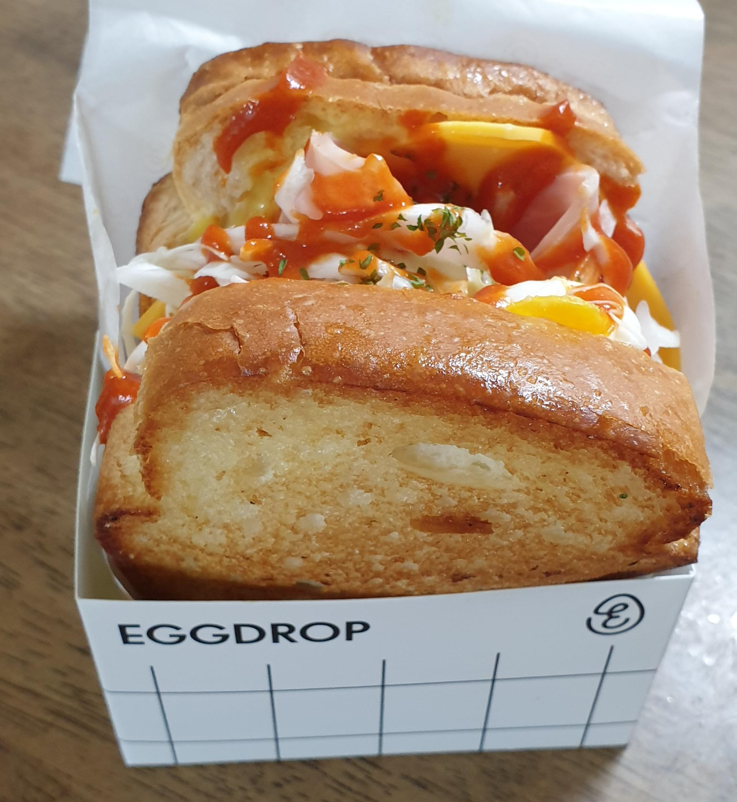 전체적으로 맛이 없는건 아닌데 같은 가격대 다른 에그드랍 메뉴나 비슷한 이삭토스트의 메뉴들과 비교할 때 제 입맛에는 덜 맛있다고 느껴졌습니다. 계란 프라이 때문인지 아니면 다른 뭔가 때문인지 뭔가 더 퍽퍽하다는 느낌도 있기도 했고요.