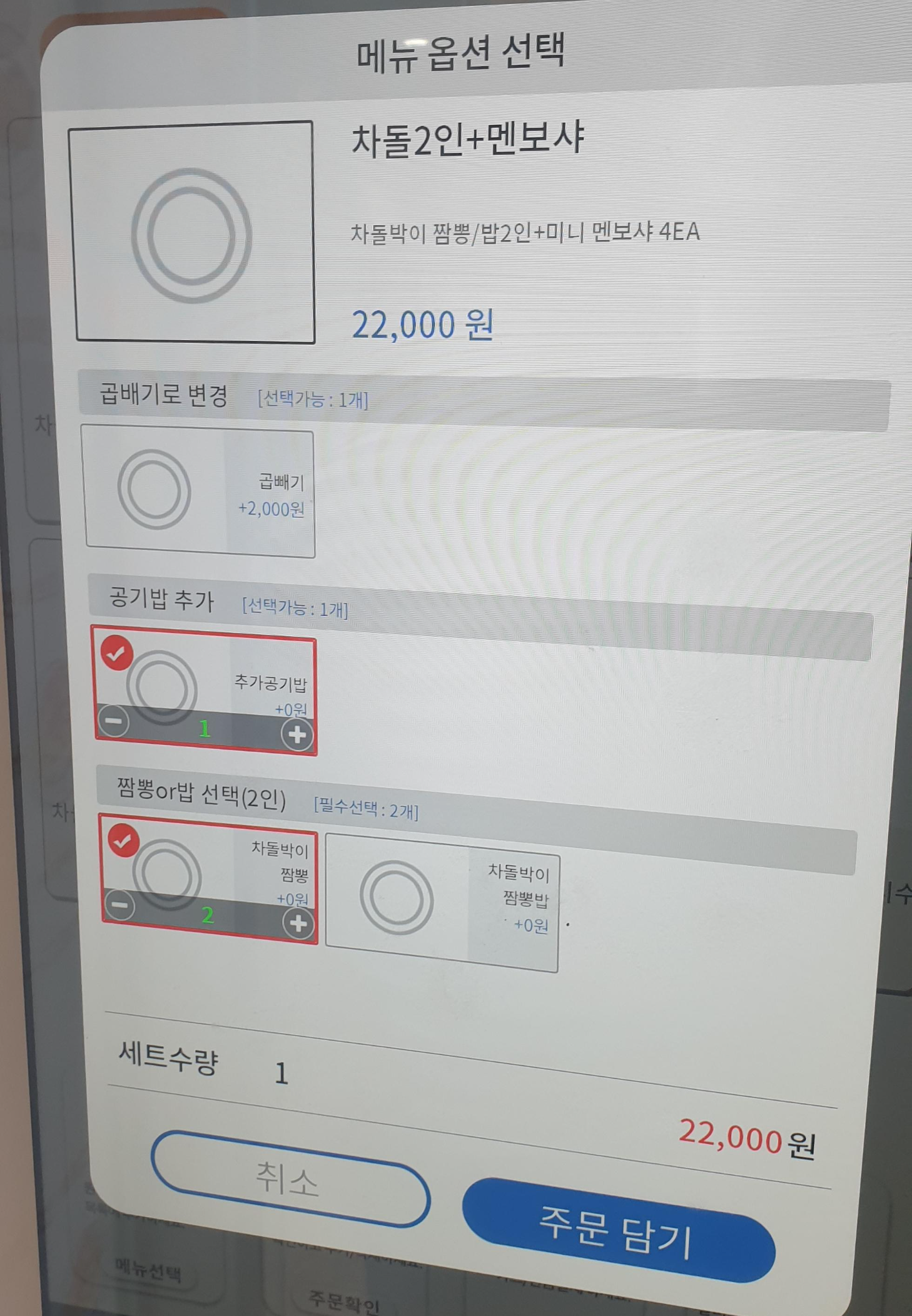 가격은 22,000원이고 차돌박이 짬뽕과 미니 멘보샤 4조각이 구성이네요.