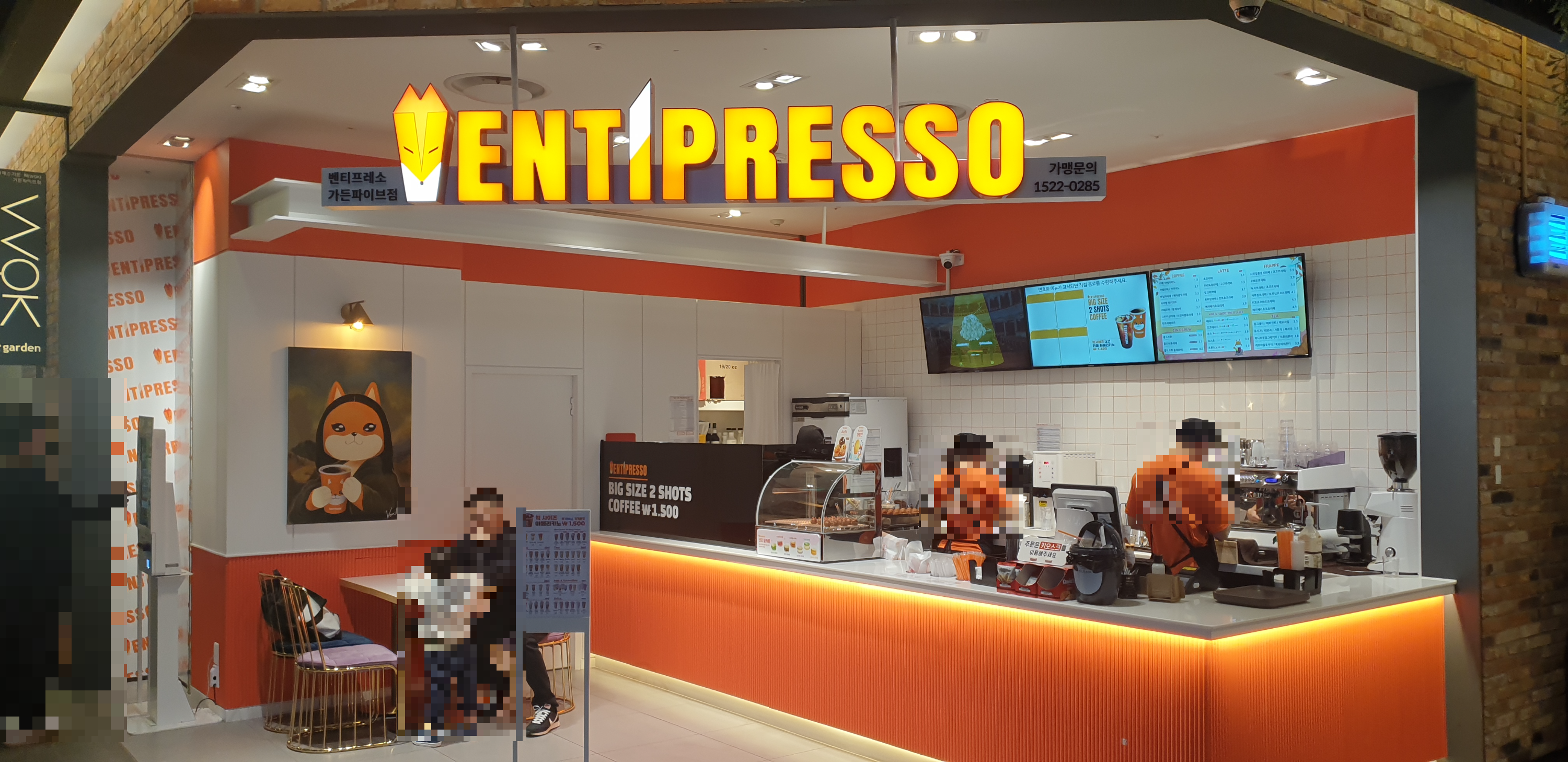 장지역 옆에 있는 가든파이브 지하 1층에 위치한 벤티프레소 가든파이브점에서 커피와 호두과자를 먹어봤습니다.