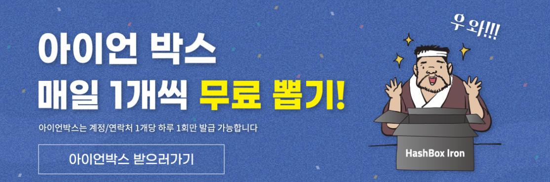 해시 박스에 아이언 박스라는 매일매일 열 수 있는 무료 랜덤박스가 추가되었습니다.