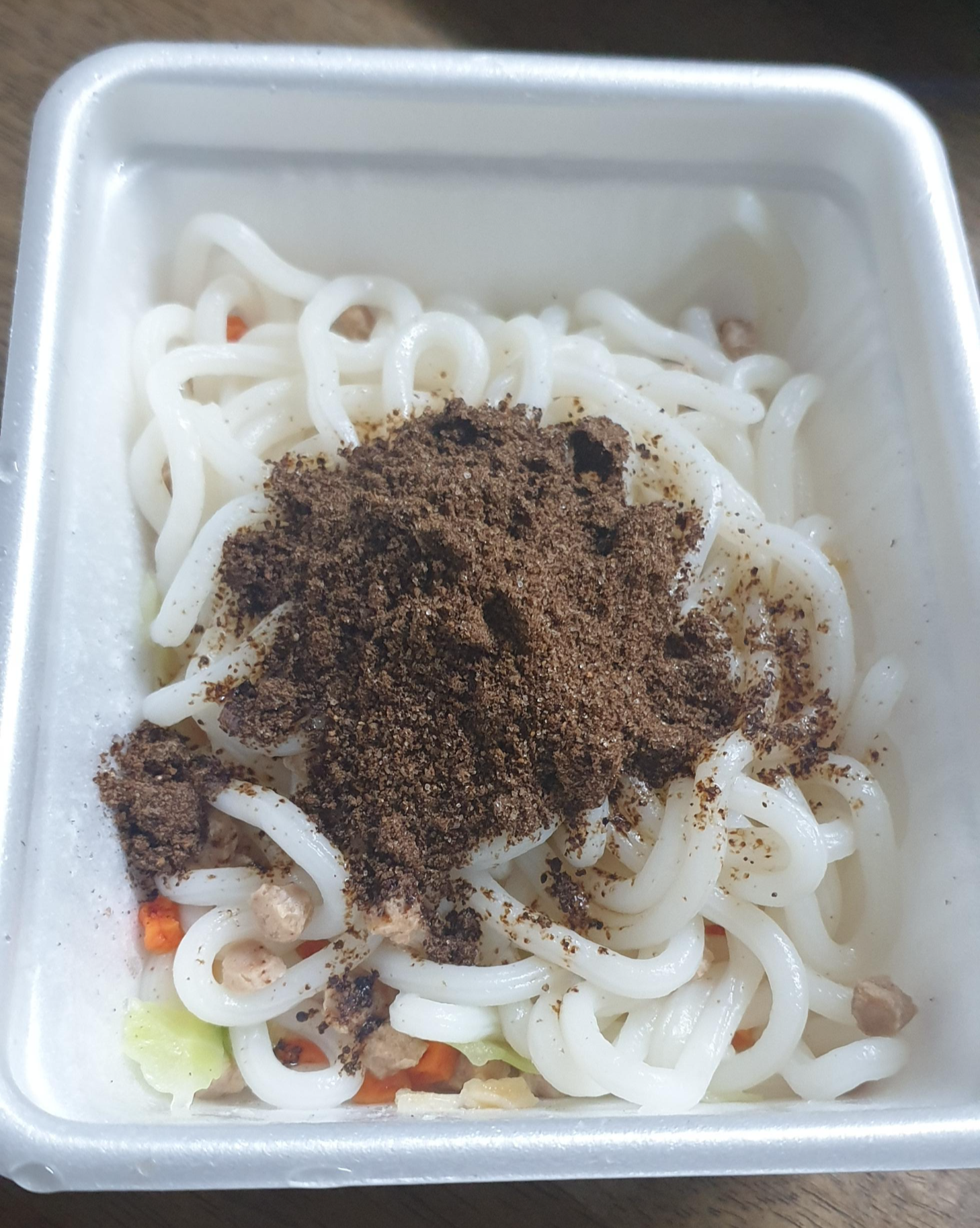 외관은 진짜 자장면 같네요. 맛은... 짜장범벅 작은 컵 느낌입니다. 컵라면보다는 좀 더 자장면 같은 느낌이지만 짜파게티 같은 라면과 비교하면 분말 자체가 덜 맛있네요. 그래도 라면이 아니라 우동면이라 좀 더 배가 부른 기분인 것 같기도 합니다.