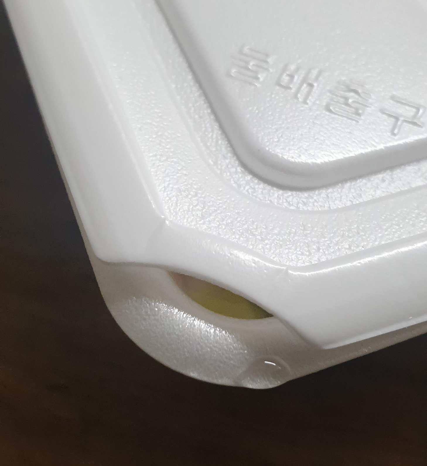 뜨거운 물을 넣고 2분 뒤 뚜껑 구석에 있는 배출구로 물을 버렸습니다. 뚜껑이 구석이 물 버리기 편하게 생겼네요.
