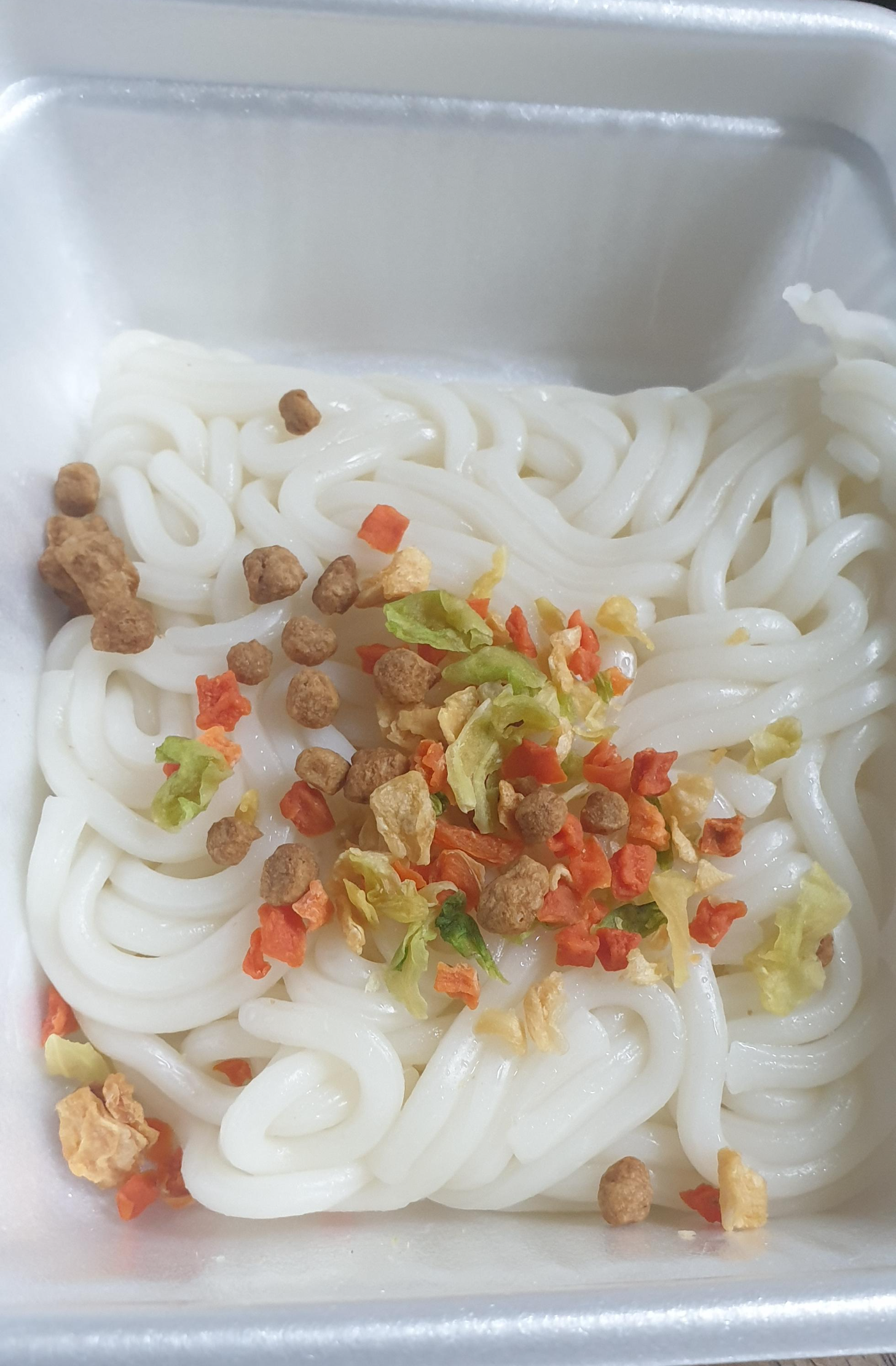 내용물은 건더기 스프와 분말스프 그리고 우동 사리가 들어있습니다.
