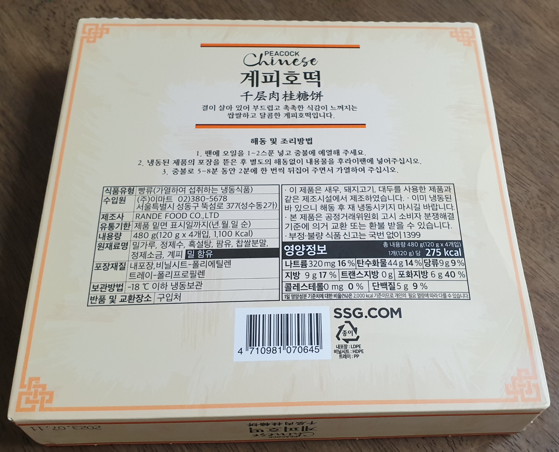 이마트 피코크 계피 호떡을 먹어봤습니다. 개당 4장이 들어있는데 개당 가격으로 치면 밖에서 사 먹는 호떡 하고 가격차이는 크게 나는 것 같지는 않네요.