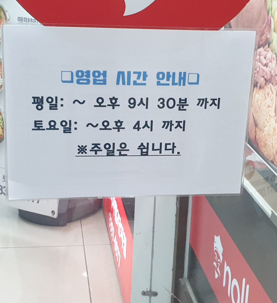 영업시간은 오후 9시 30분까지 라고 하네요.
