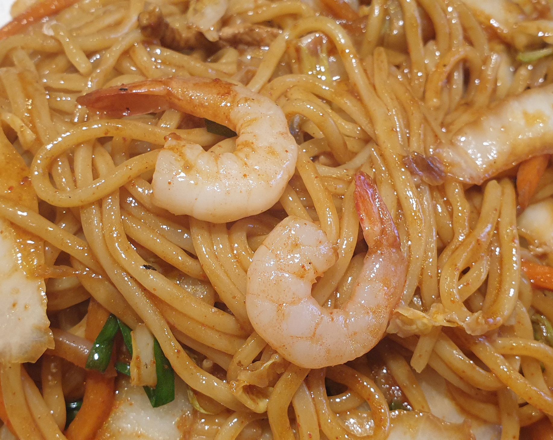 그리고 나온 볶음짬뽕... 홍콩반점은 볶음짬뽕도 면 곱빼기를 팔면 좋겠는데 말이죠... 자장면 짬뽕은 다 팔면서 볶음짬뽕은 안 파는 게 아쉽습니다. 면과 당근, 목이버섯, 그리고 배추가 눈에 들어오네요. 적지만 고기와 새우도 보입니다.