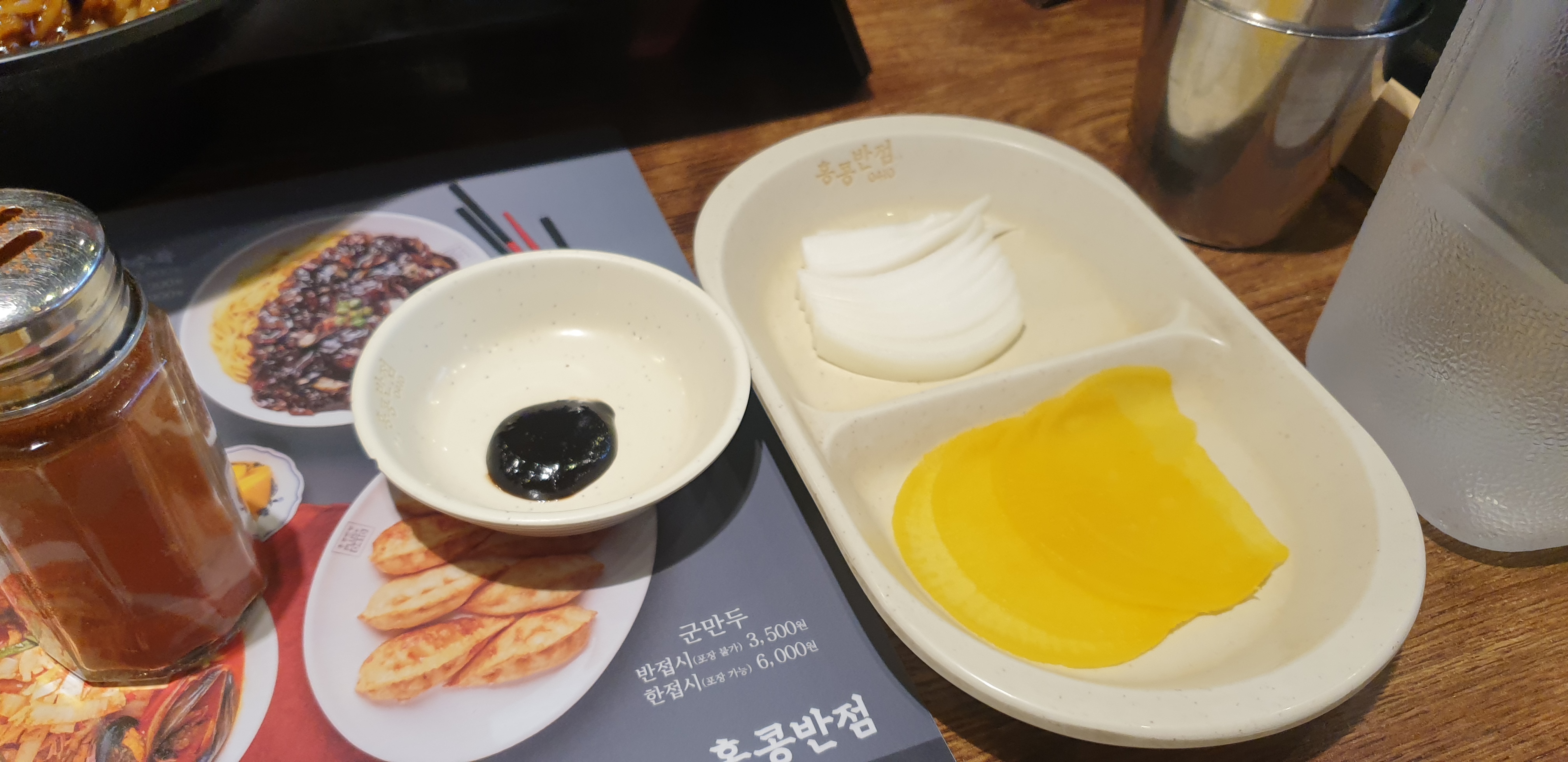 반찬은 중국집답게 양파와 단무지 춘장입니다. 맛은 역시나 어디서나 먹던 그 맛...