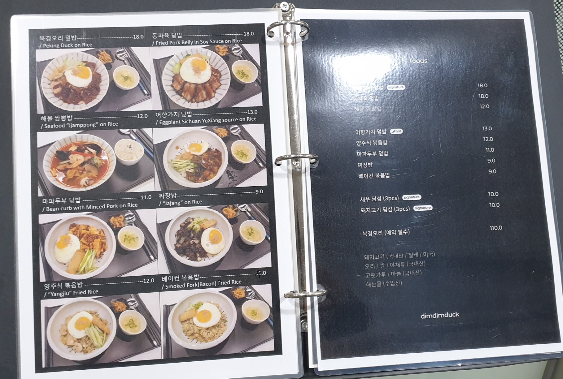 북경오리를 파는 식당이네요. 저는 컨퍼런스에서 받은 식권으로 베이컨 볶음밥(9,000원)을 먹었습니다.