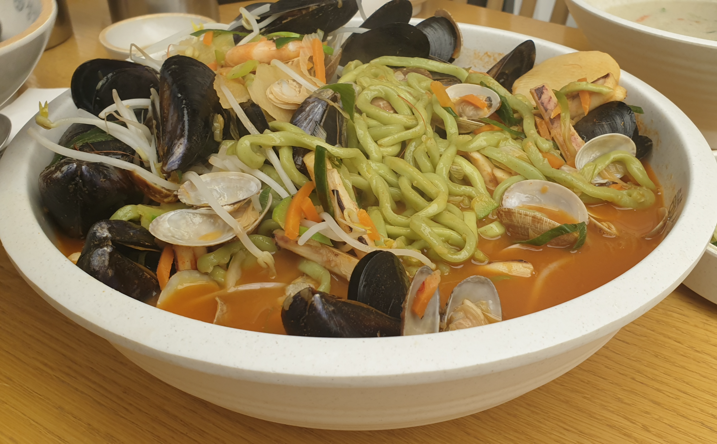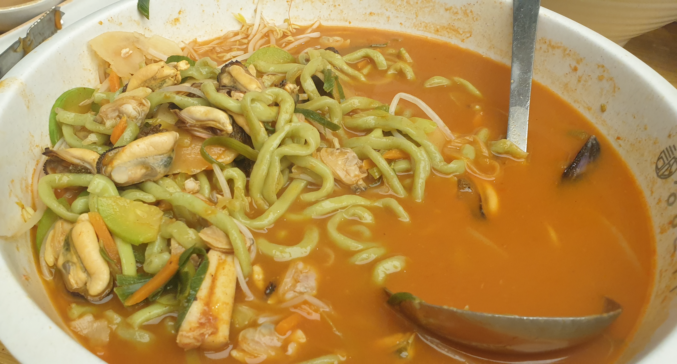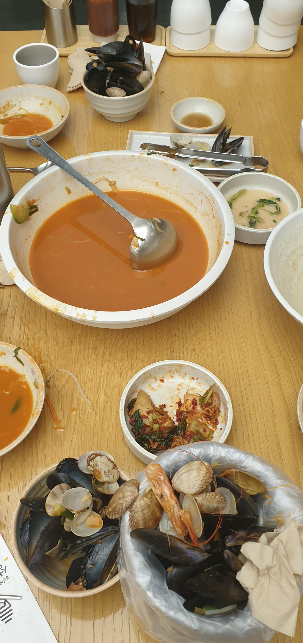 홍합 하고 바지락이 많이 들어있어서 면자체를 건져먹기가 힘들어서 먹기전에 홍합하고 바지락 껍데기를 먼저 건져내고 먹었습니다. 오징어 자체는 질기고 맛도 별로 였습니다. 다만 홍합이 많을 건 좋았는데 2인분이라 그런지 껍질 통에 담기에는 껍질이 많았습니다. 국물 자체는 얼큰하고 좋았습니다만, 껍질 때문에 먹기는 불편하네요.