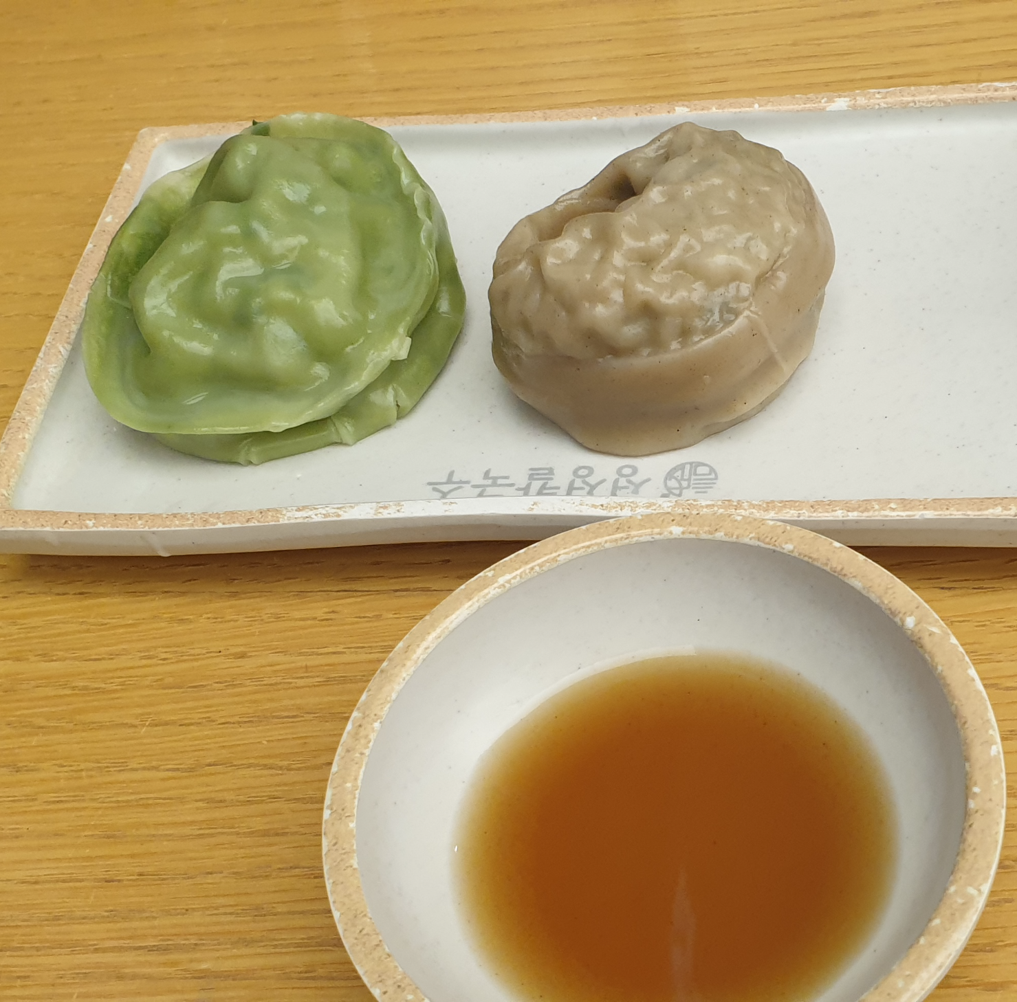 부추만두는 무추가 많이 들어 있어서 부추맛이 강했습니다. 메밀만두는 그냥 평범한 만두 맛이었습니다.