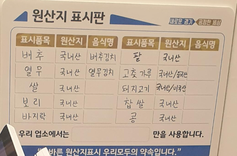 원산지 표시판은 대부분 국내산이라고 하네요.