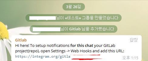 Gitlab 을 클릭하면 챗봇이 연결되고 URL을 하나 알려줍니다.