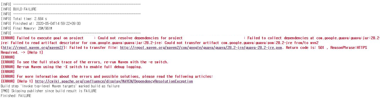 그래서 일단 pom.xml에서 'http' 를 https로 바꾸고 다시 빌드를 하니 501로 인한 실패가 사라졌습니다.