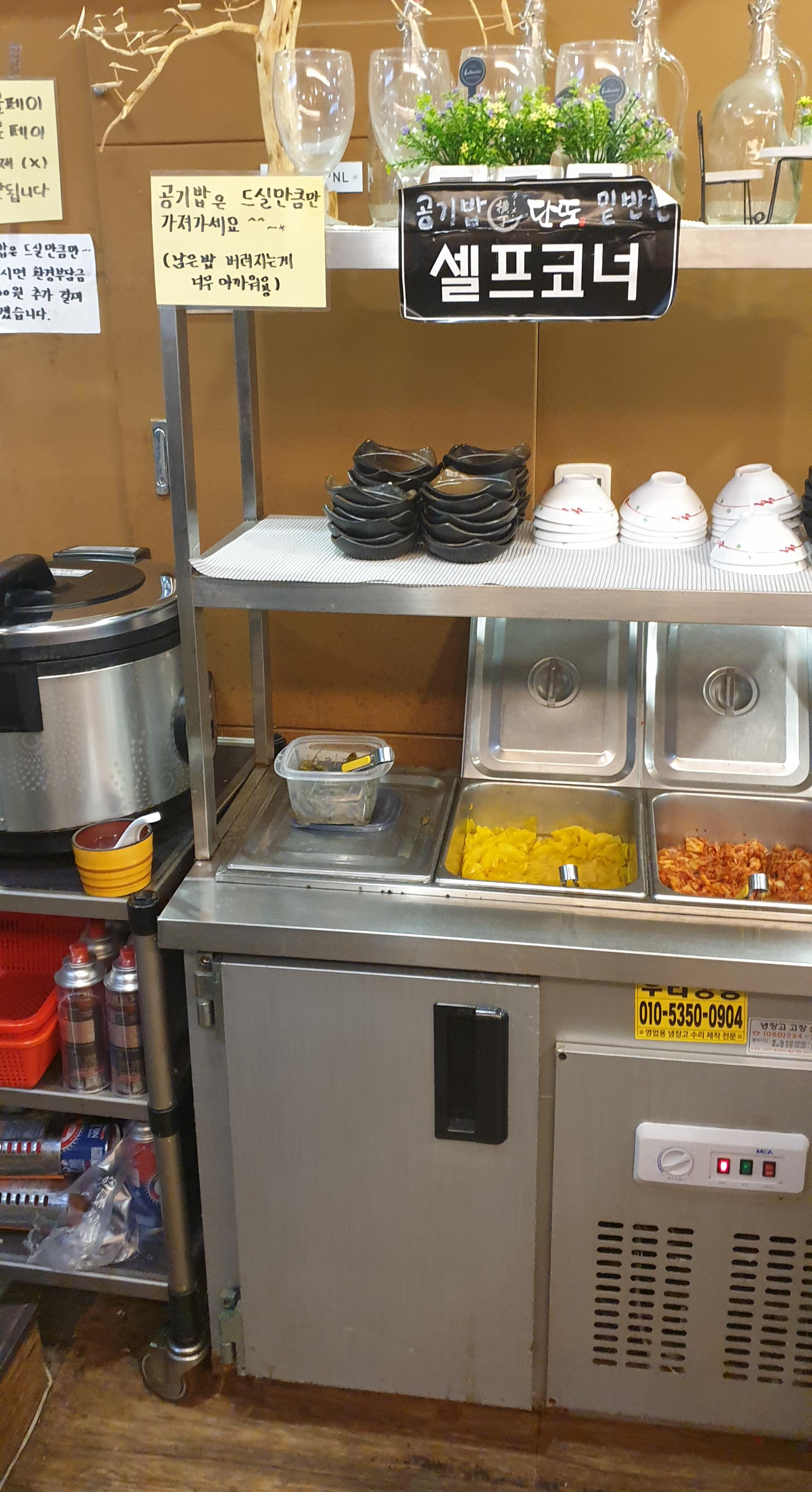 반찬과 밥은 셀프코너에서 더 먹을수 있습니다. 라멘집에 공깃밥 먹을 수 있는 건 좋은 것 같습니다.