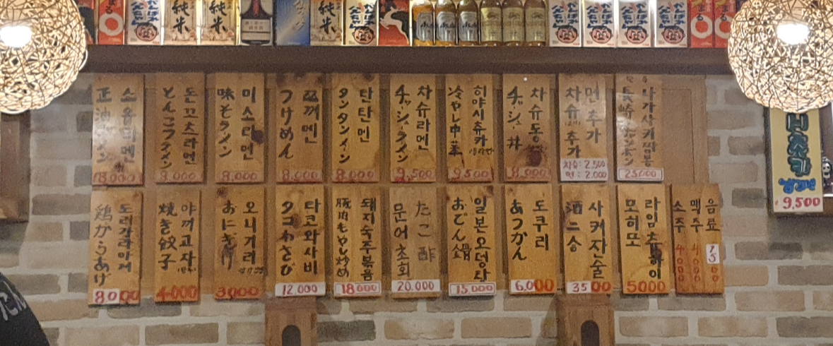 벽에도 나무판에 메뉴가 표시되어 있는데 뭔가 눈에 안 들어오게 생겼네요.
