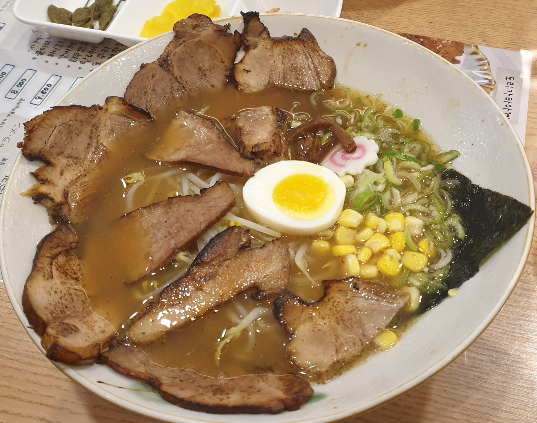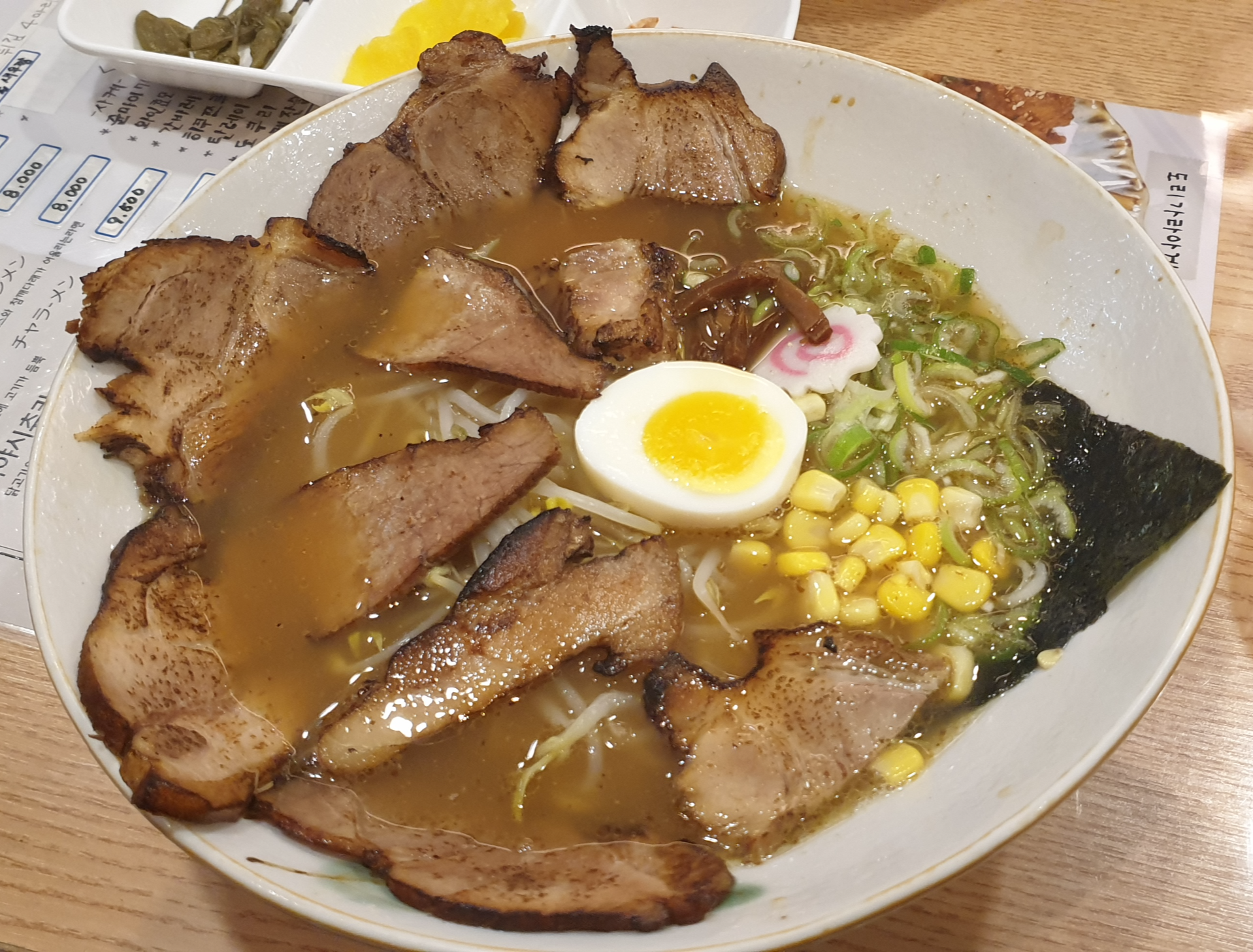 그리고 나온 차슈라멘 확실히 차슈가 많이 보입니다. 그리고 옥수수와 김, 계란도 눈에 들어오네요.