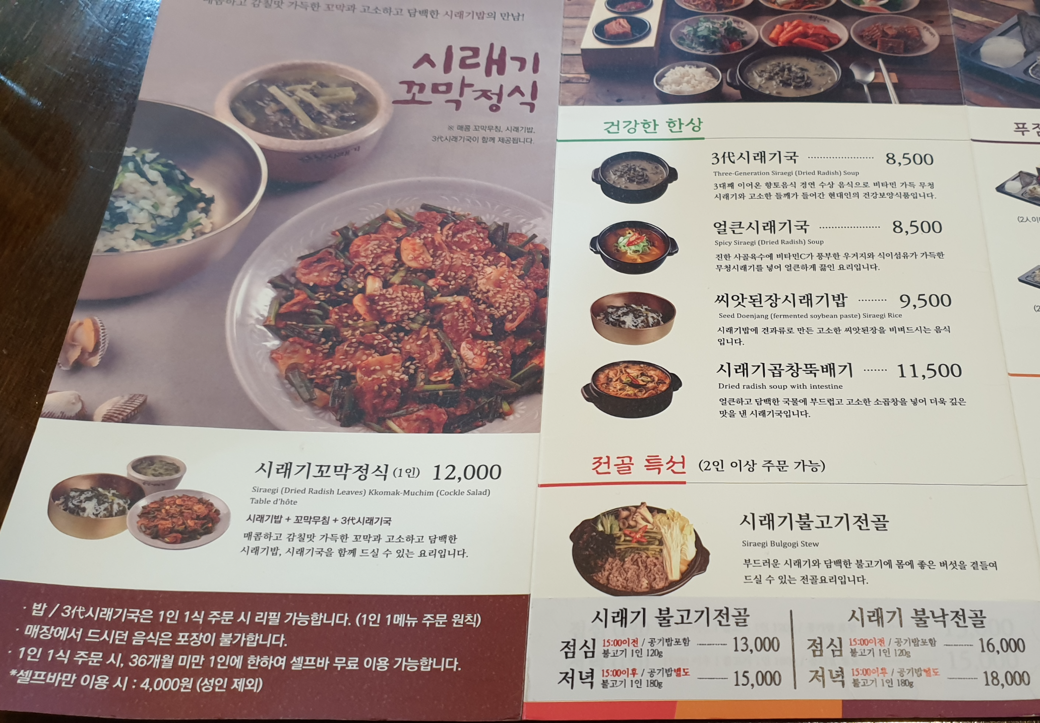 시래깃국이나 꼬막정식 불고기 전골 같은 메뉴를 팔고 있습니다.