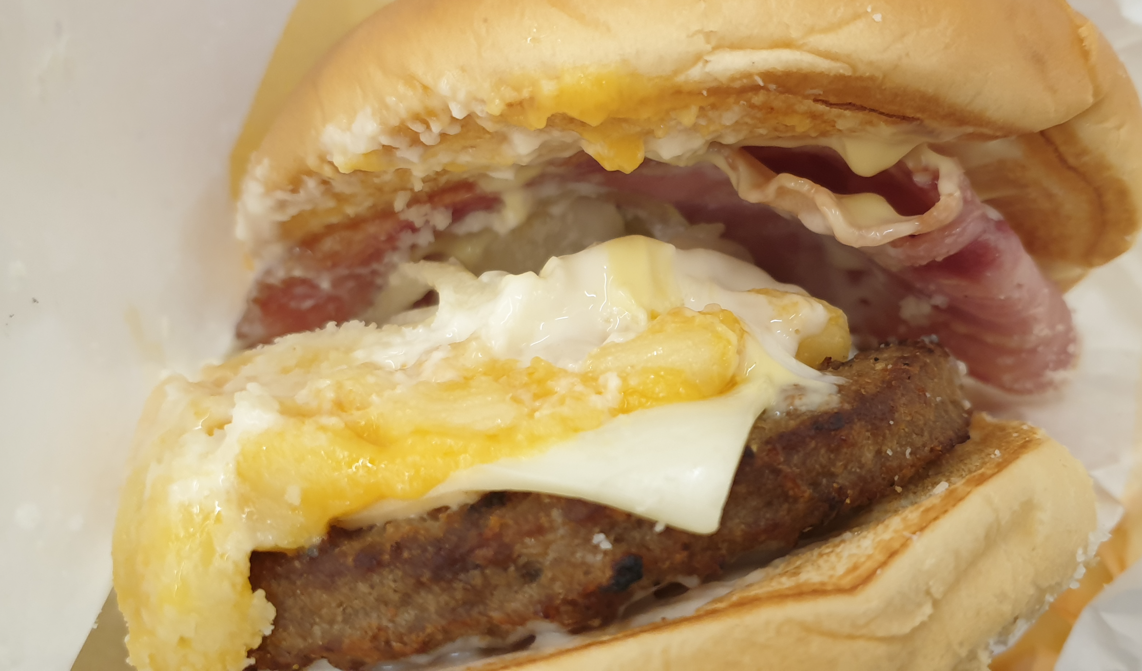 안에는 고기 패티와 치즈, 맥 앤 치즈, 베이컨이 들어이네요.