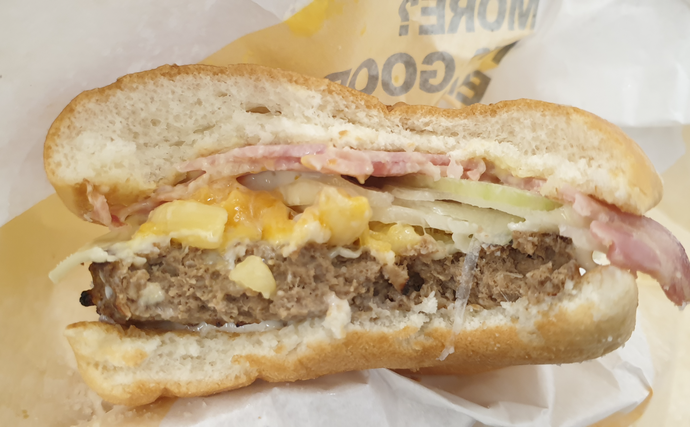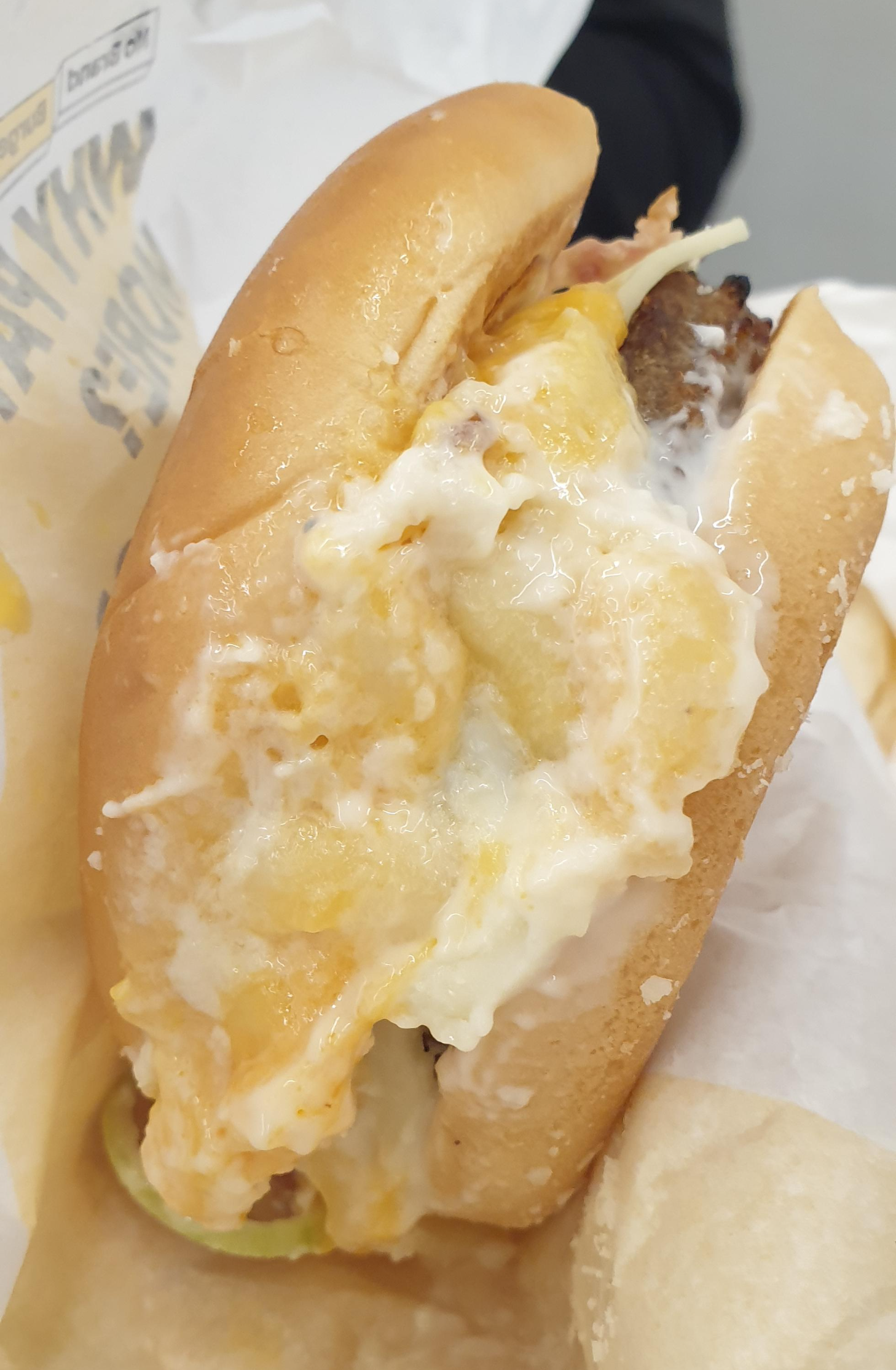 그리고 역시나 한쪽에 쏠려서 반대편은 더 찐하고 짜게 먹었네요. 사실 맥앤치즈가 고르게 안 퍼져도 간이 쌔기 때문에 맛이 없거나 하지는 않지만... 아쉽네요. 고기 패티는 그냥 평범한 것 같았는데 의외로 패티가 있어서 덜 짰던 것 같습니다.