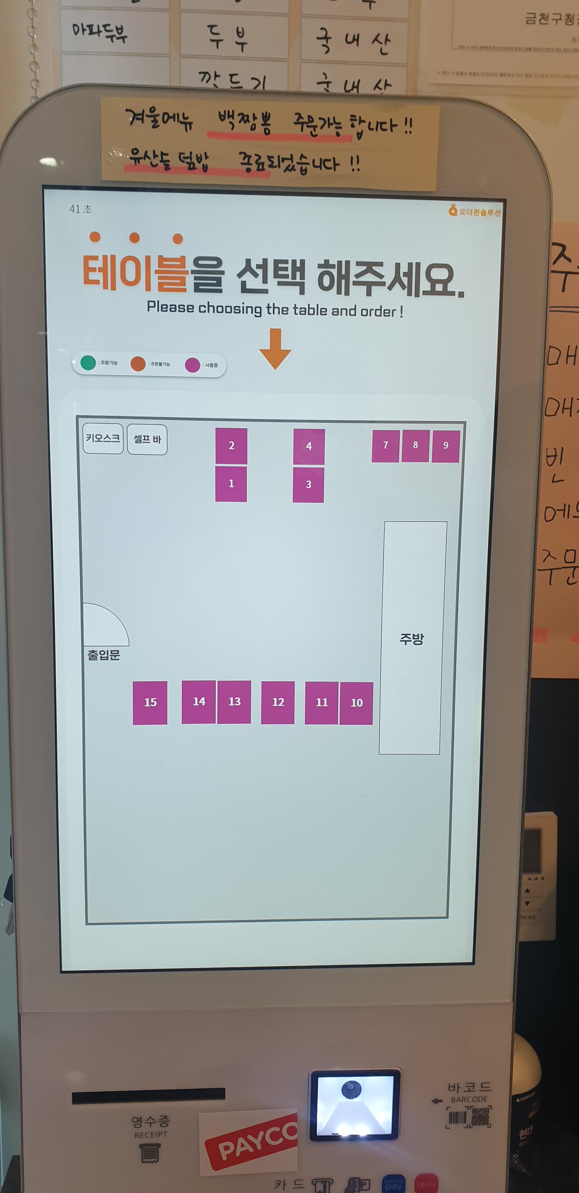 언제나 생각하지만 테이블이 비어도 키오스크가 금방금방 최신화가 안 되는 것 같네요.
