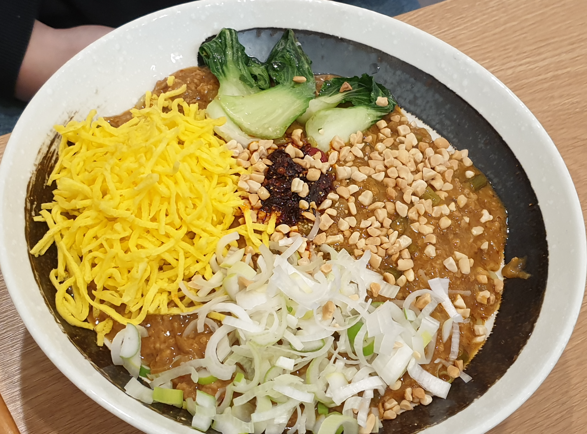 사천식 비빔 탄탄면 곱빼기 곱빼기답게 양이 많아 보였습니다. 위에 마라? 같은 게 조금 들어있는데 조금 먹어보니 마라 같은 중국 매운맛에 면역이 없는 저도 땅콩의 힘인지 먹을만해서 맛있었던 것 같습니다.
