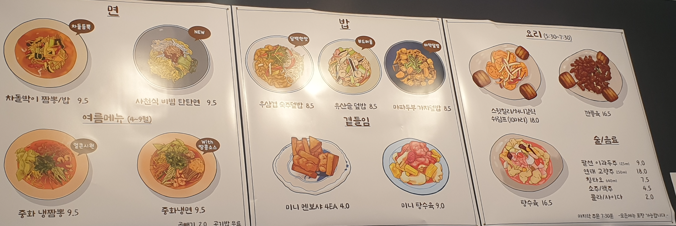 원래는 유산슬 덮밥을 먹고 싶었으나 키오스크에서 선택이 안돼서 물어보니 겨울 계절메뉴 백짬뽕을 하면서 유산슬 덮밥을 잠시 안 팔게 됐다고 하네요. 아쉽...
