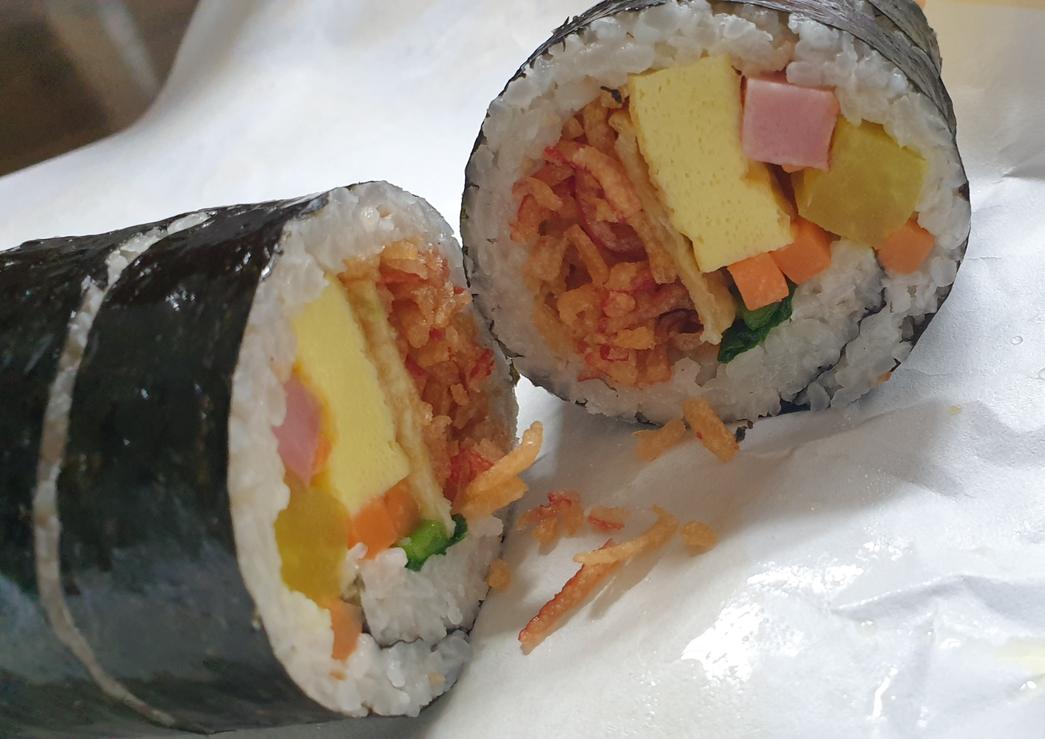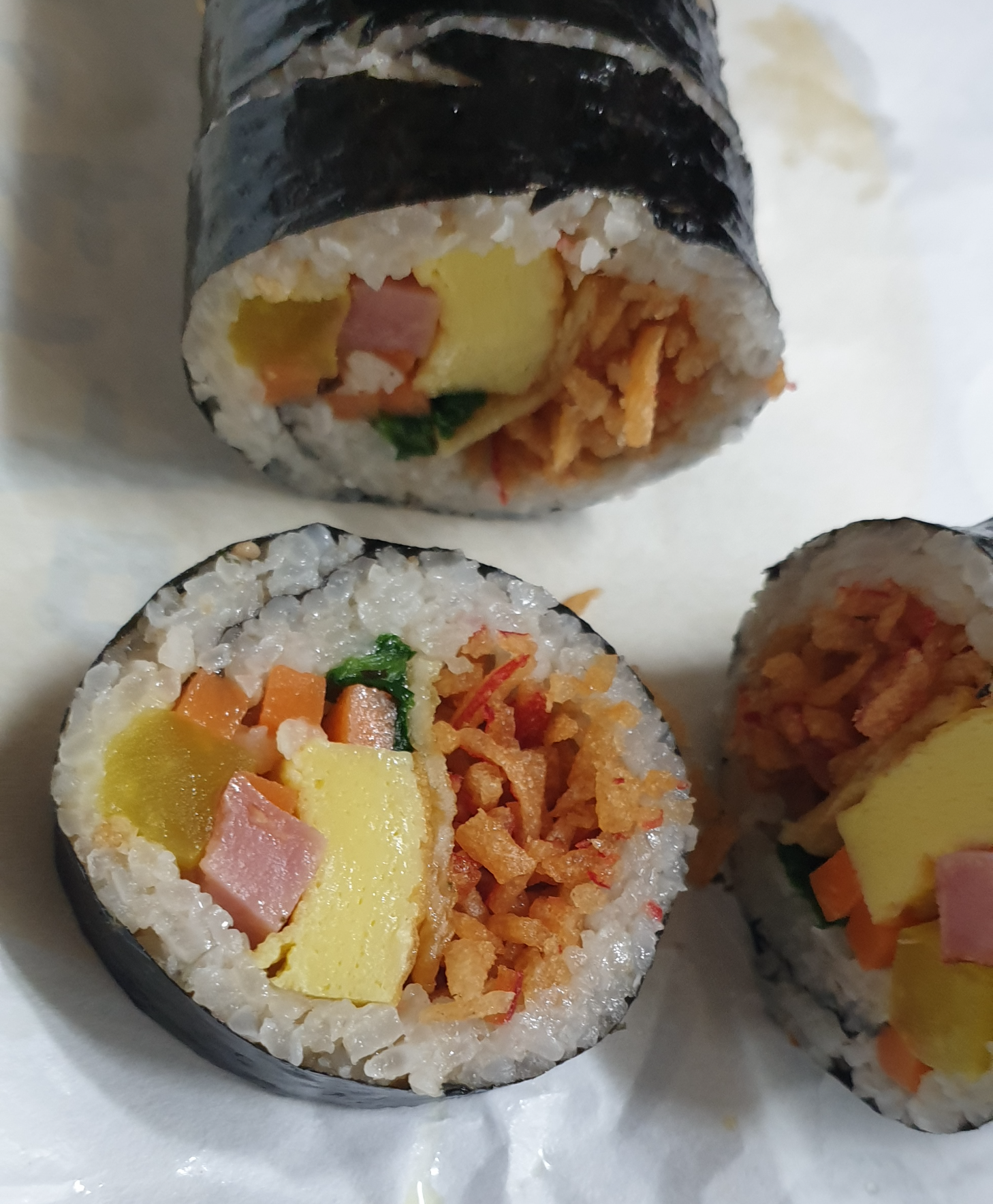그래도 소시지가 오도독 식감도 좋고 소시지도 좋아하는 저에겐 딱 맞는 김밥이었습니다.
