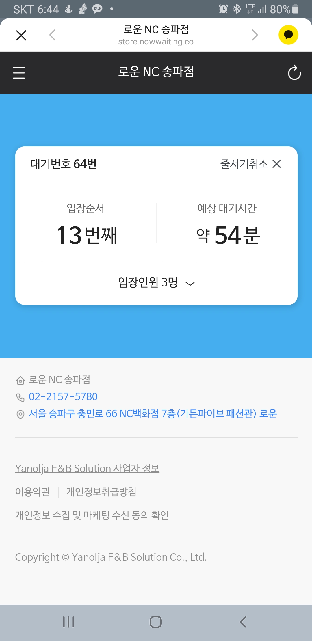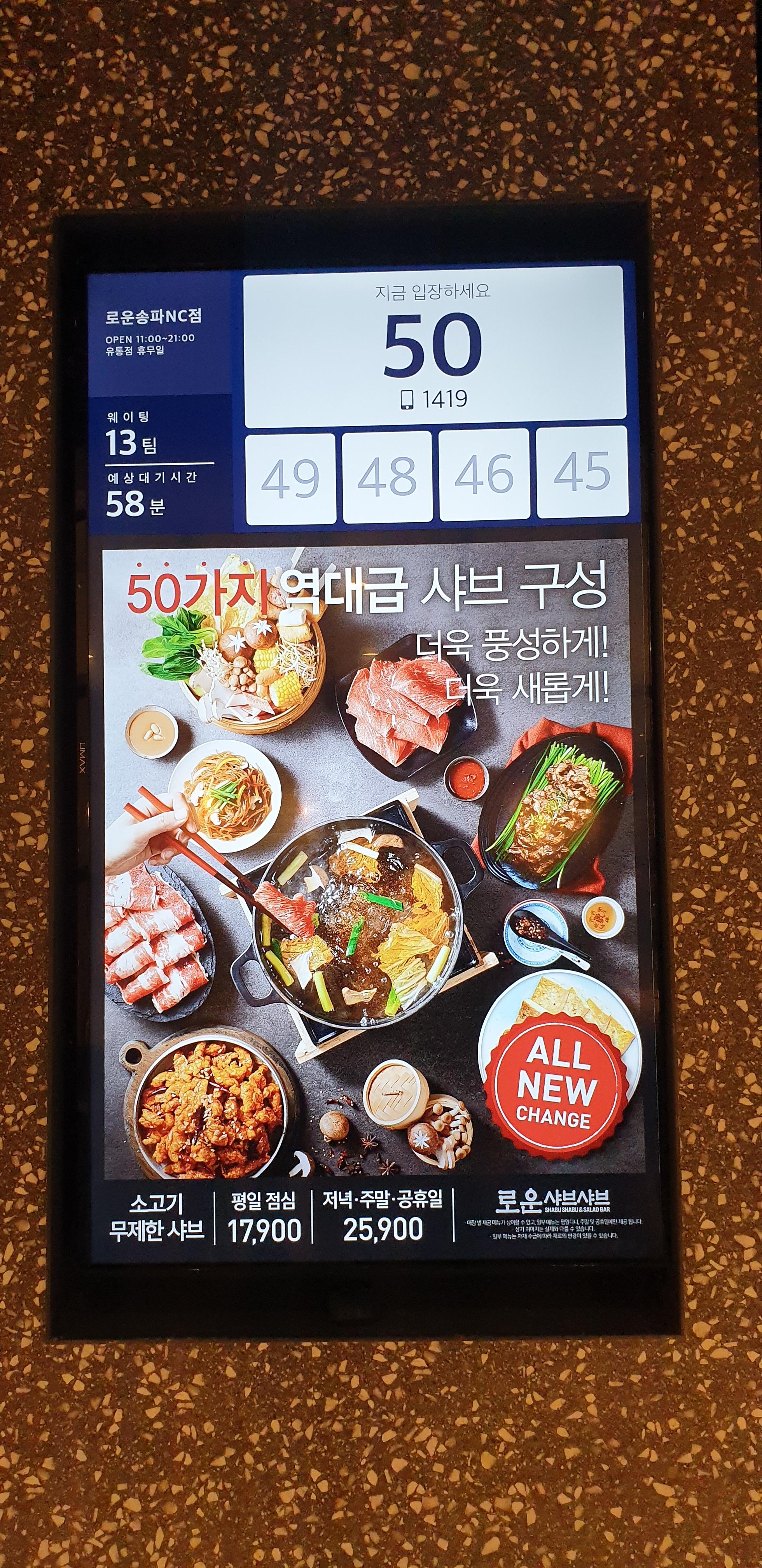 일단 입구에서 태블릿으로 티켓팅을 하는 공간이 있었습니다. 저희는 13번째 입장이네요.