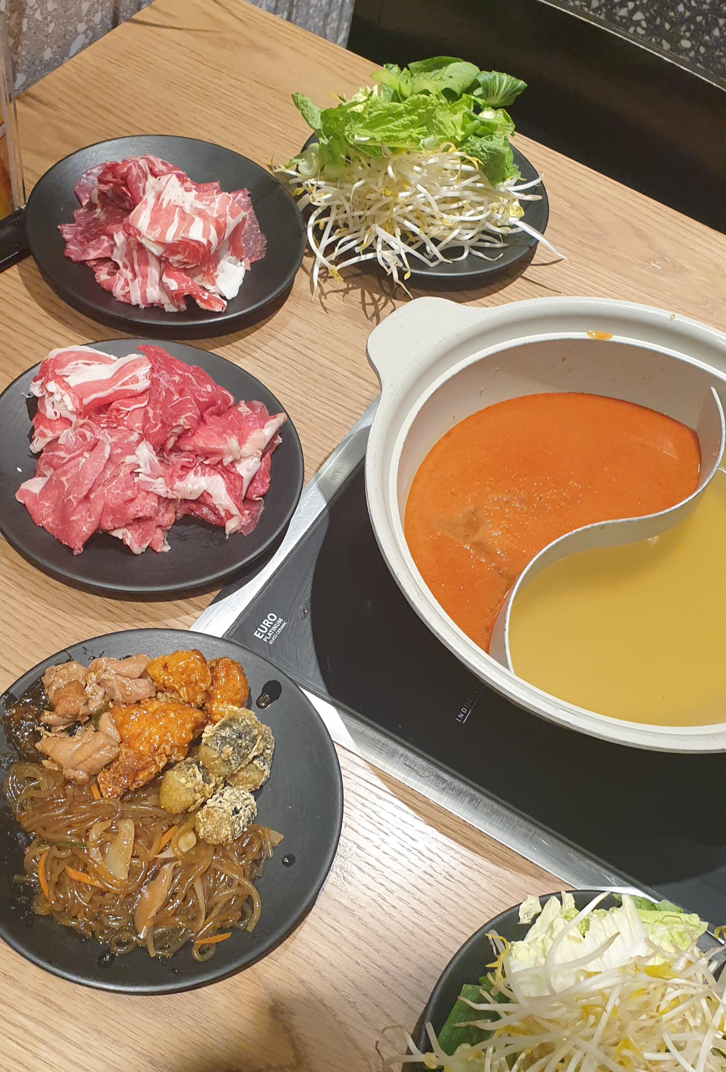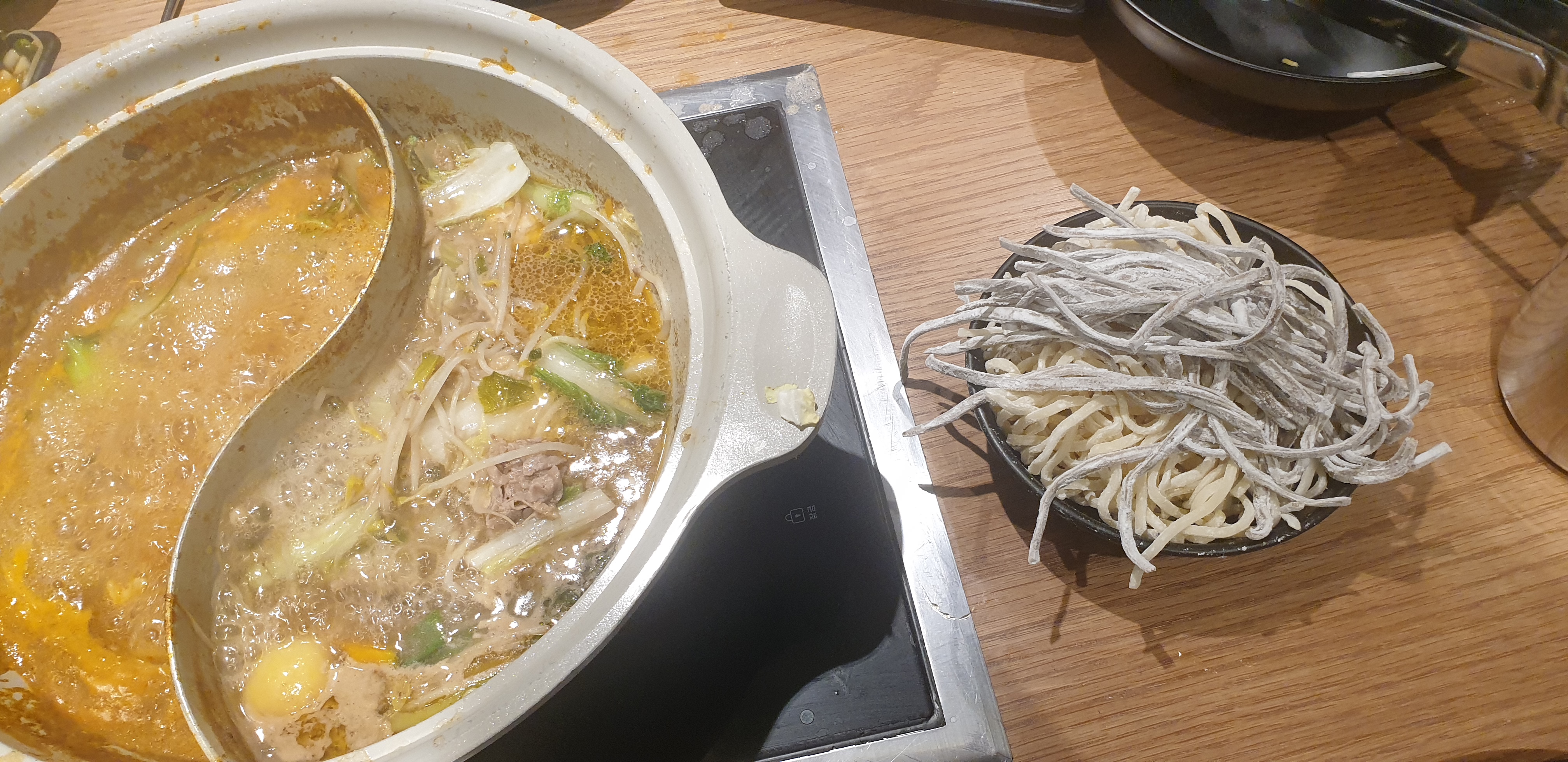 저희는 2가지 육수를 먹어보기 위해 반반 나눠져 있는 냄비로 먹었네요.