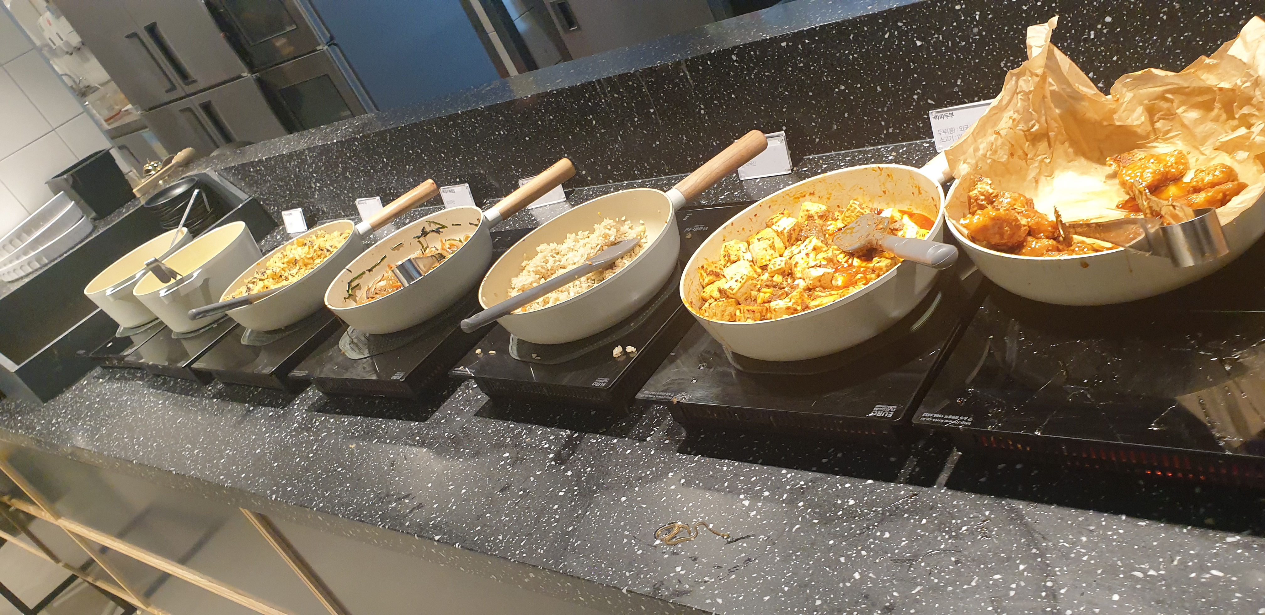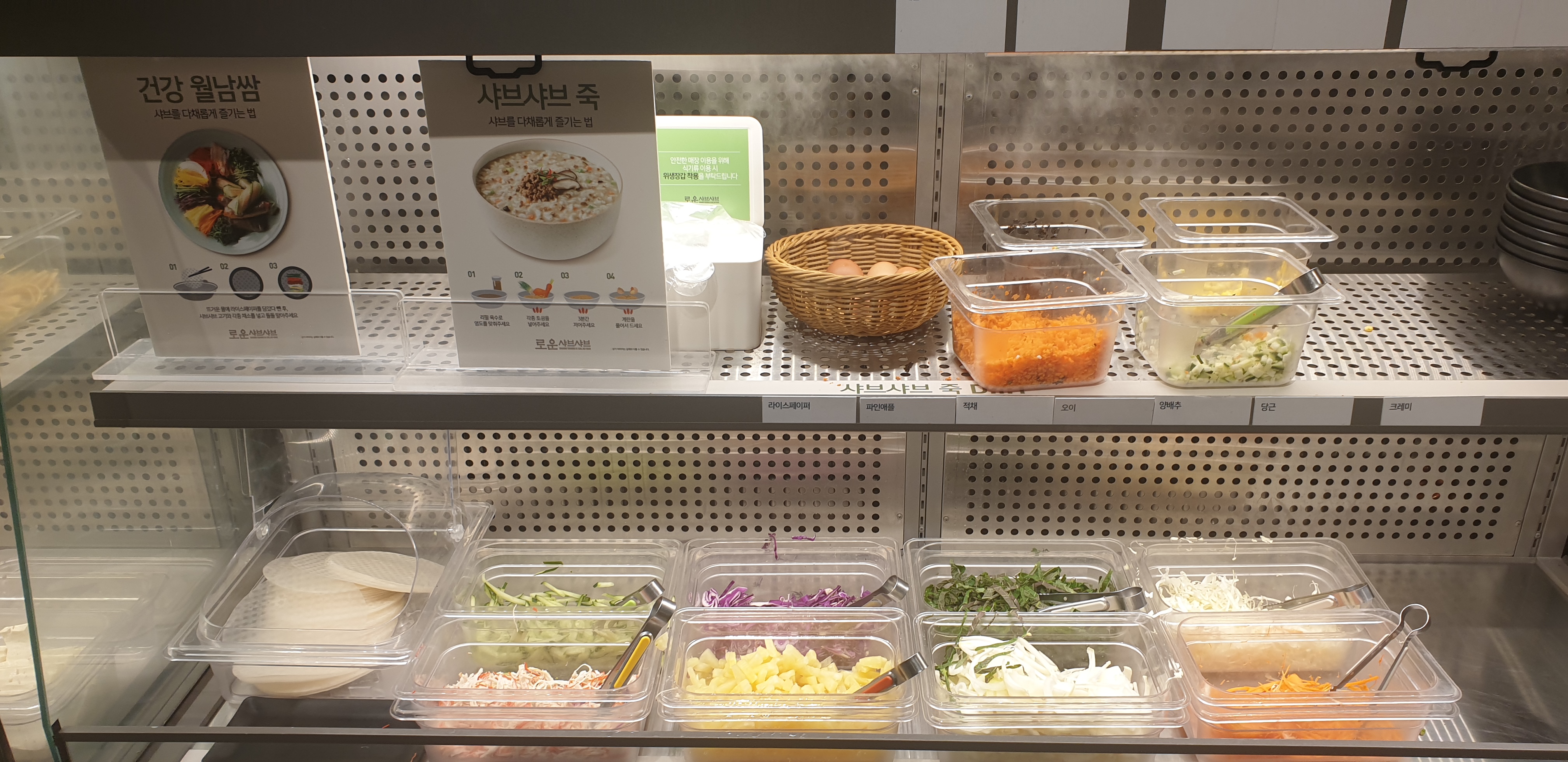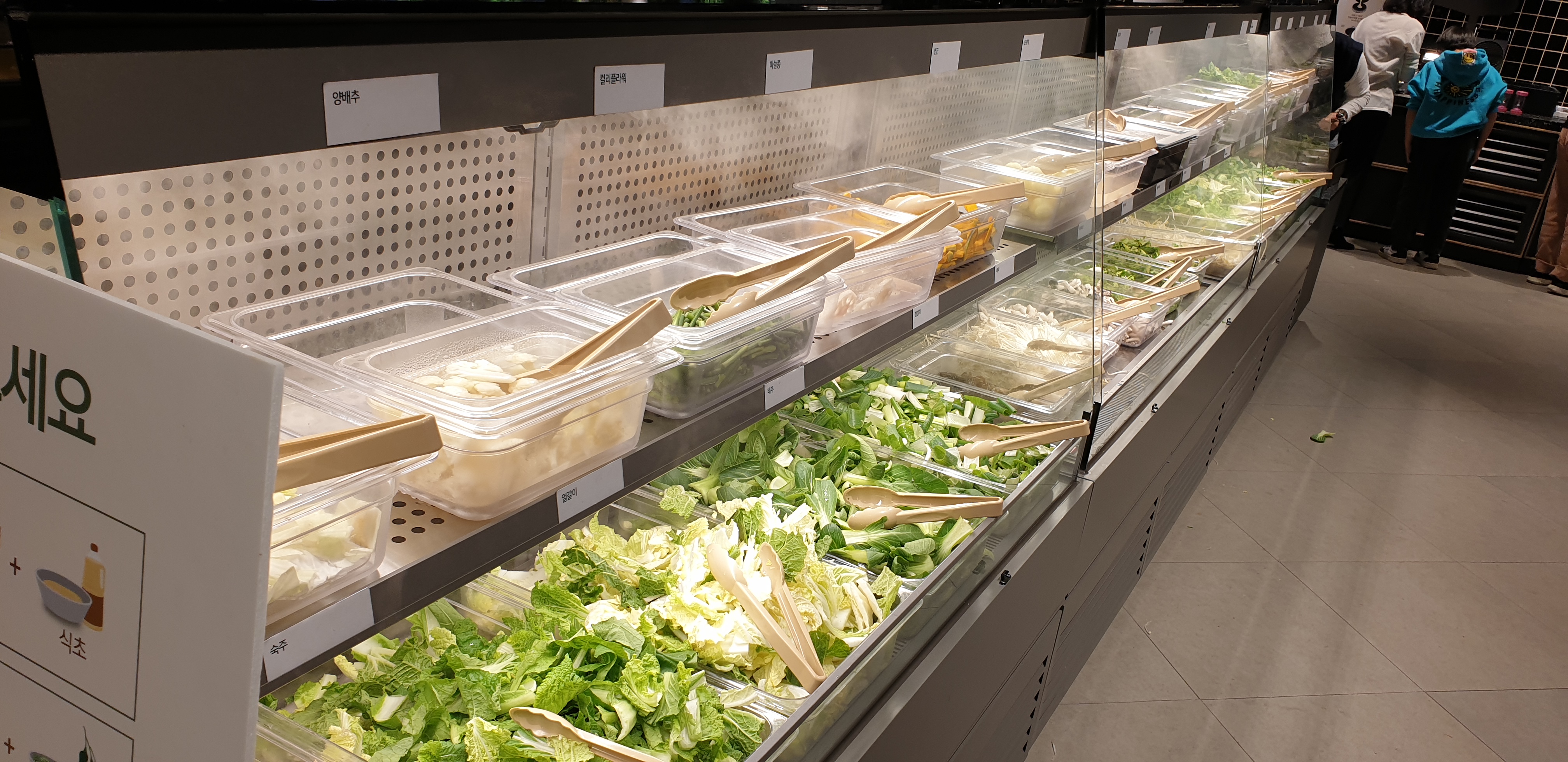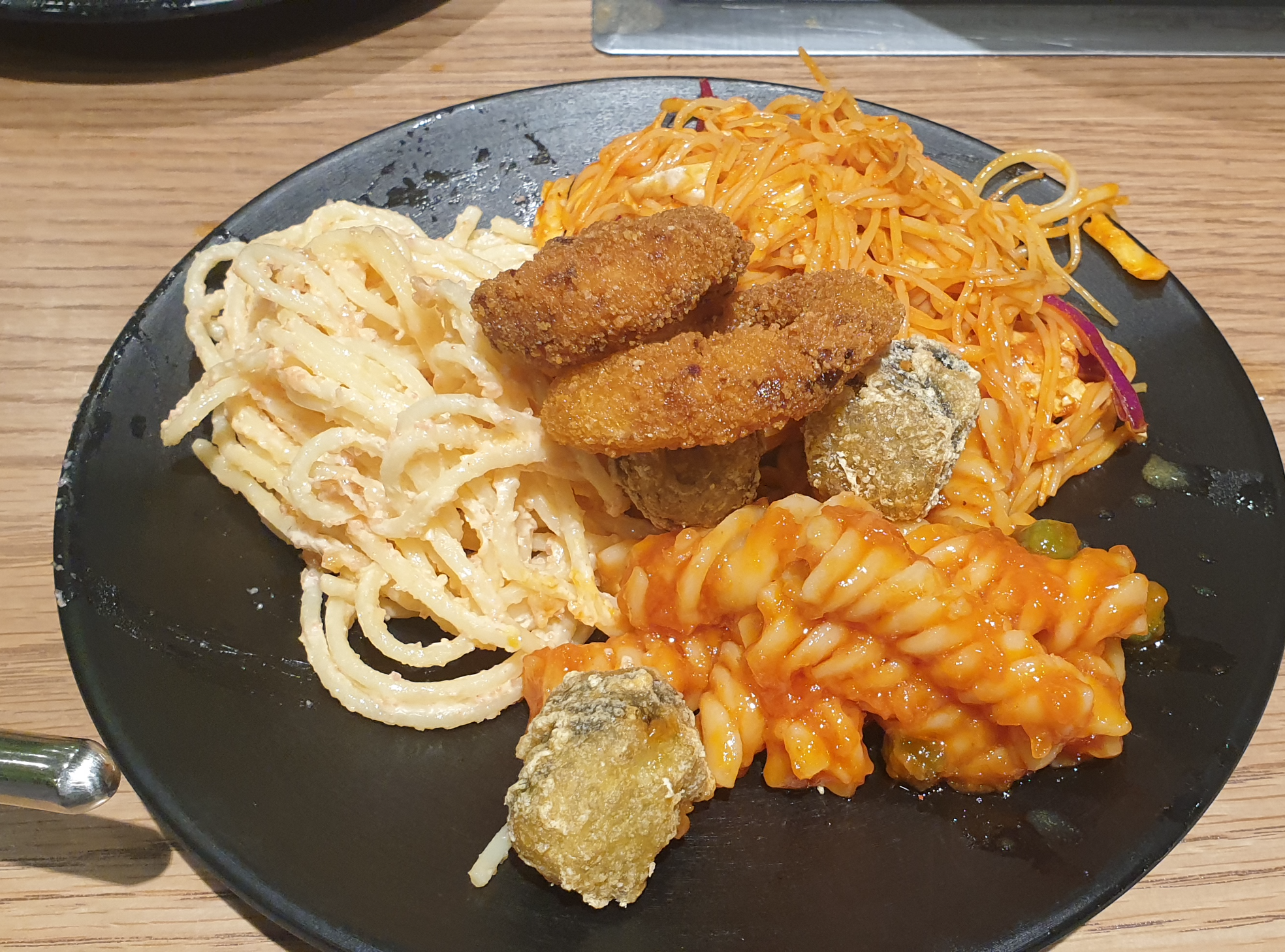 샐러드바를 기웃기웃 하니 죽 재료와 다양한 면이 있는 걸 확인했었기 때문에 바로 면을 가지려 갔습니다.