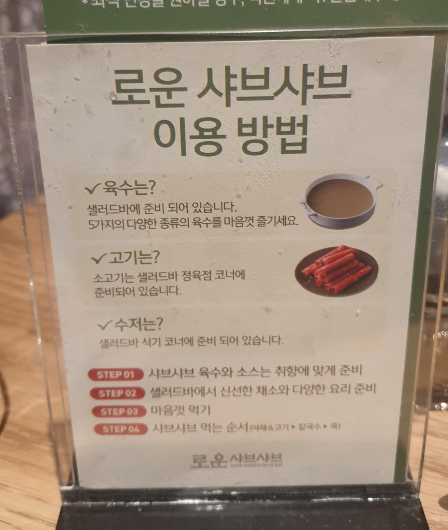 먹는 순서가 있는데 일반적인 샤부샤부 먹는 순서였습니다.