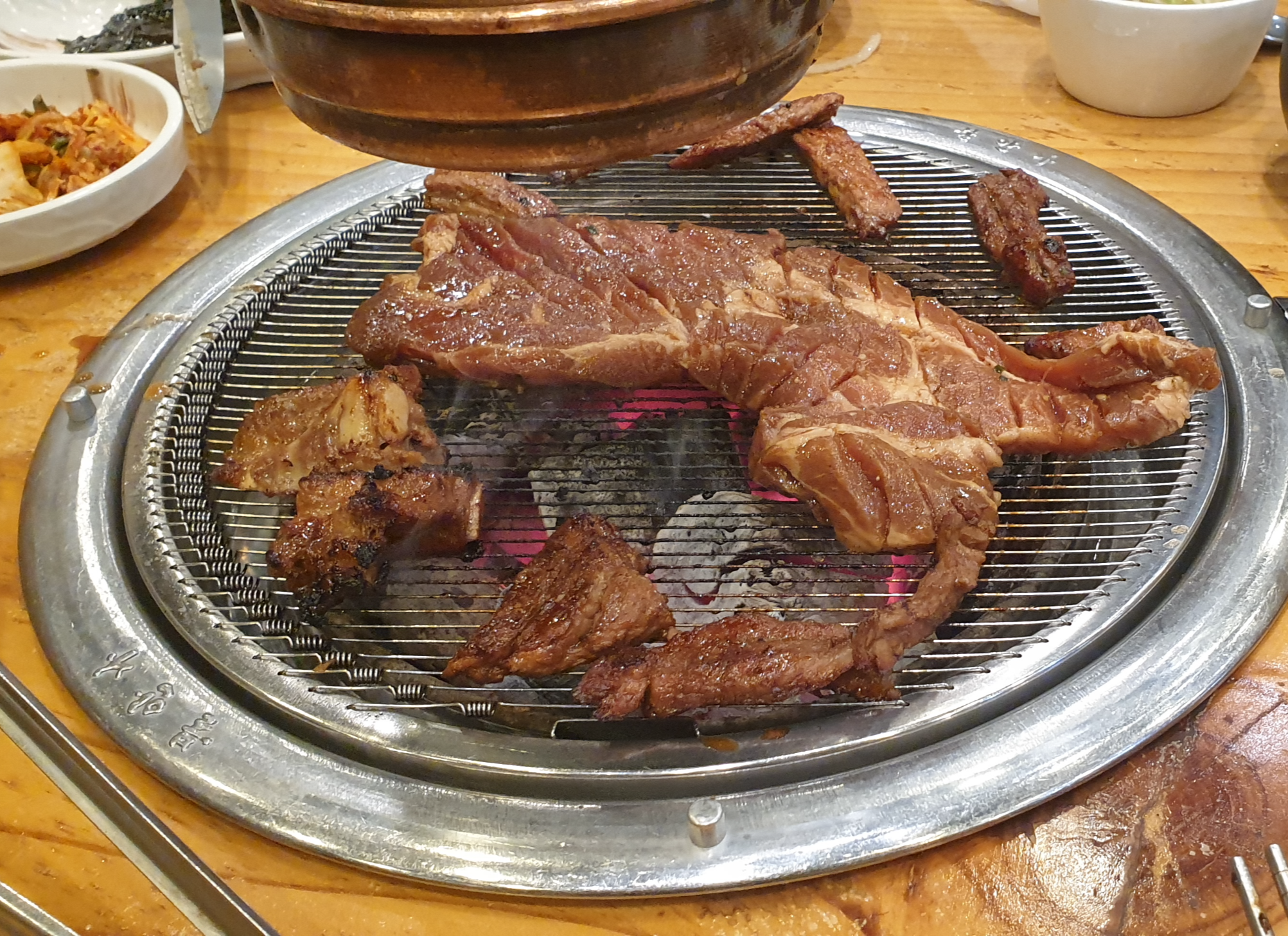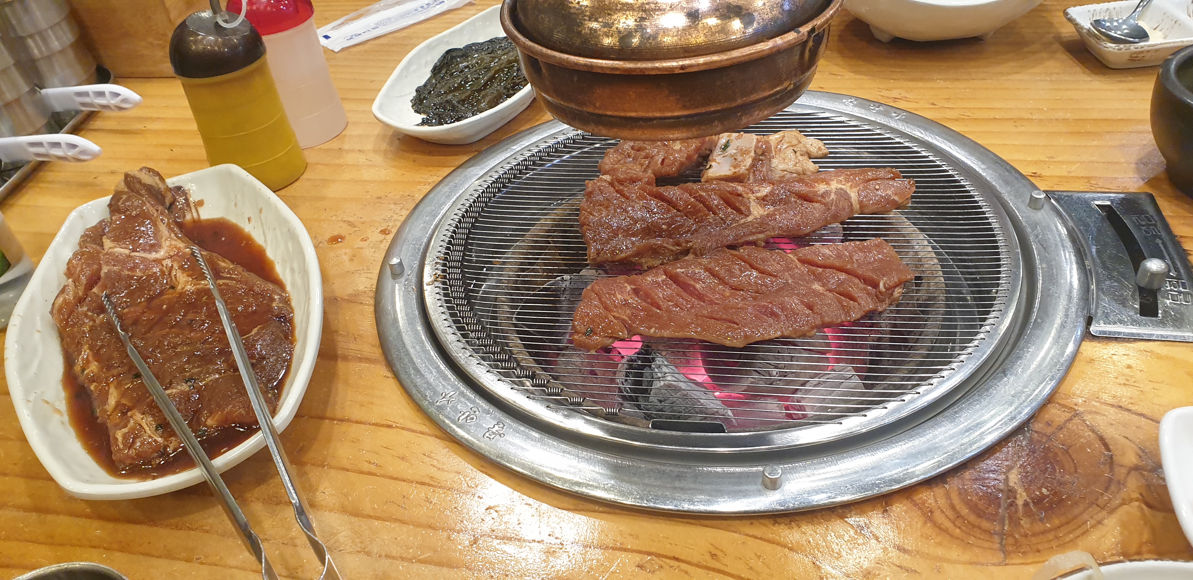 숯불에다가 구워서 먹었습니다. 갈비라 그런지 자주 안 뒤집으면 탈것 같아서 집게 들고 계속 뒤집어 구웠네요.