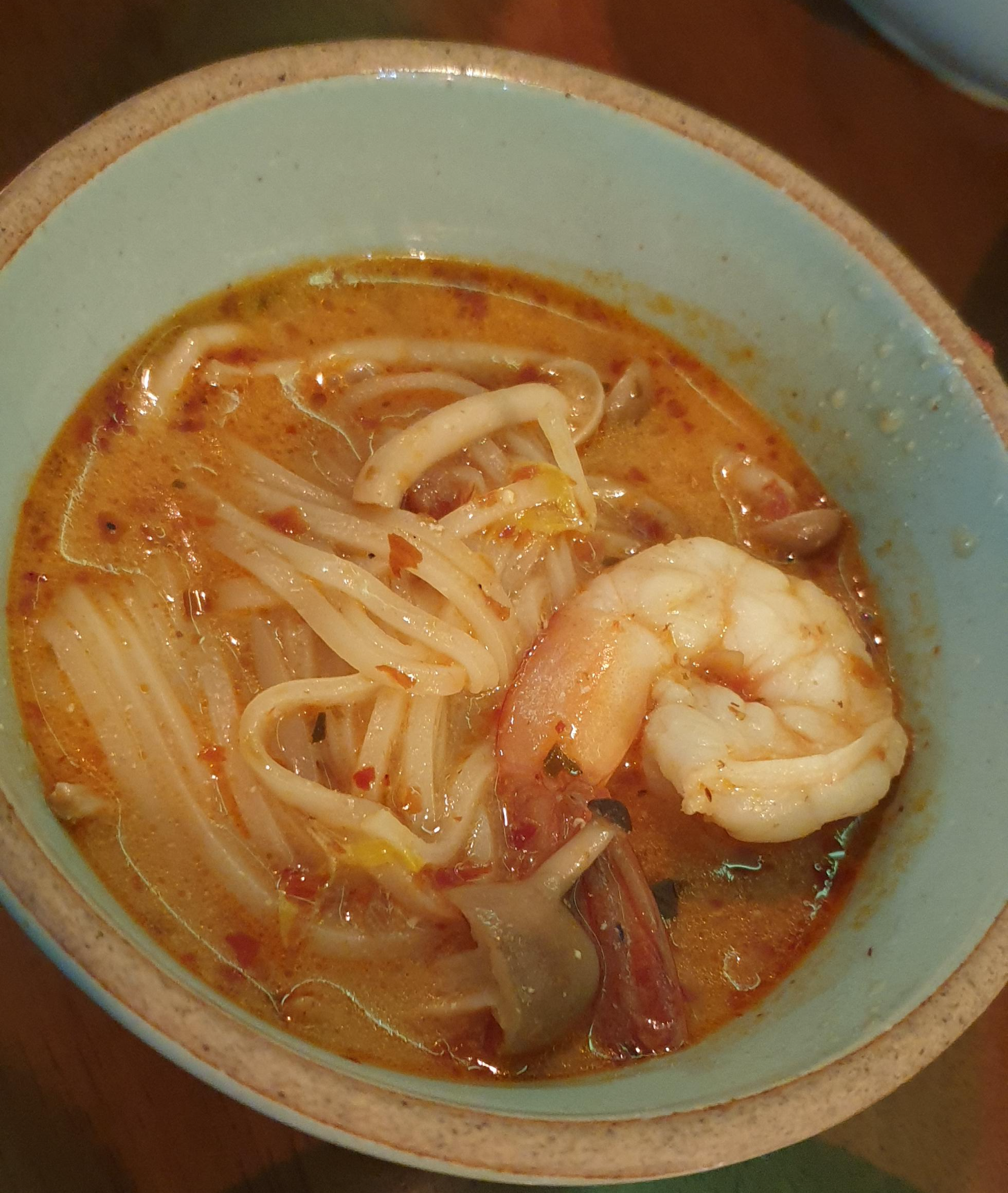 같이 간 다른 일행들이 다 똠양꿍이 맛있다고 하는 걸 보면 맛있게 나왔던 것 같긴 한데... 개인적으로 똠양꿍 특유의 그 상큼한 맛? 을 별로 안 좋아하는데, 그래도 새우도 들어가있고, 면만 건져 먹을 땐 괜찮았지만 역시나 국물을 먹어보니 제 입맛엔 똠양꿍은 안 맞는다는 걸 느꼈네요.
