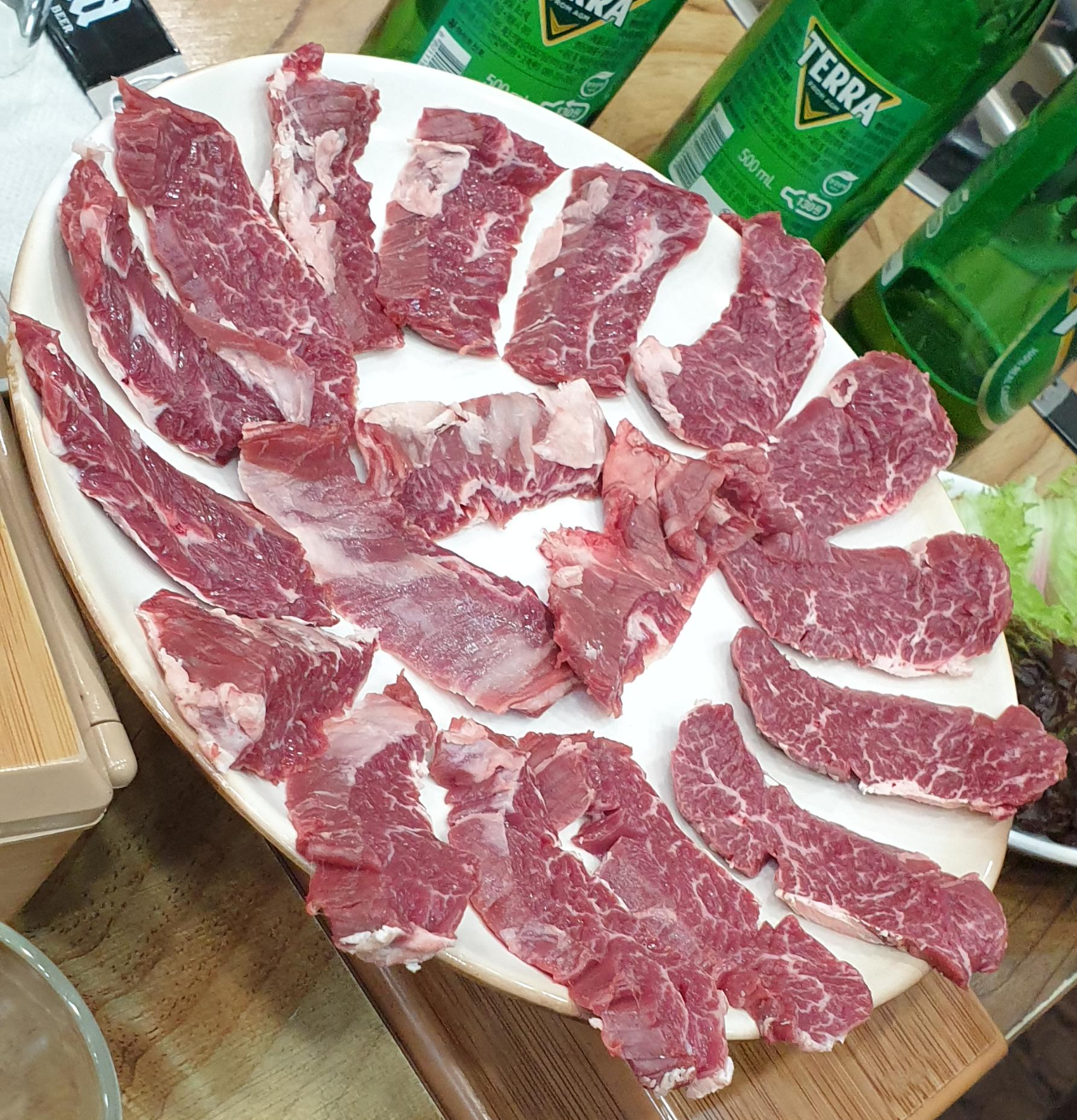 차돌박이 말고도 고기가 3종류가 나온 거라고 하는데 사실... 저는 굽기 전에도... 구운 후에도... 먹으면서도 차돌박이 빼고는 어떤 게 뭔지는 잘 모르겠더군요.